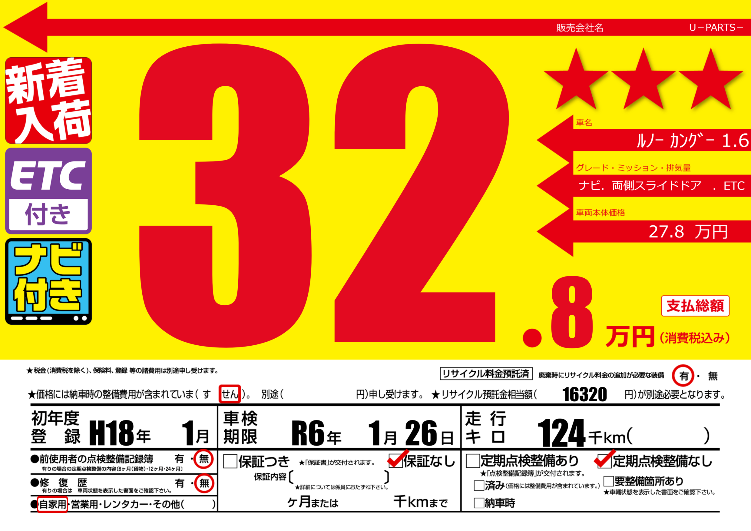 なし | 車検制限 | R6年1月26月 |