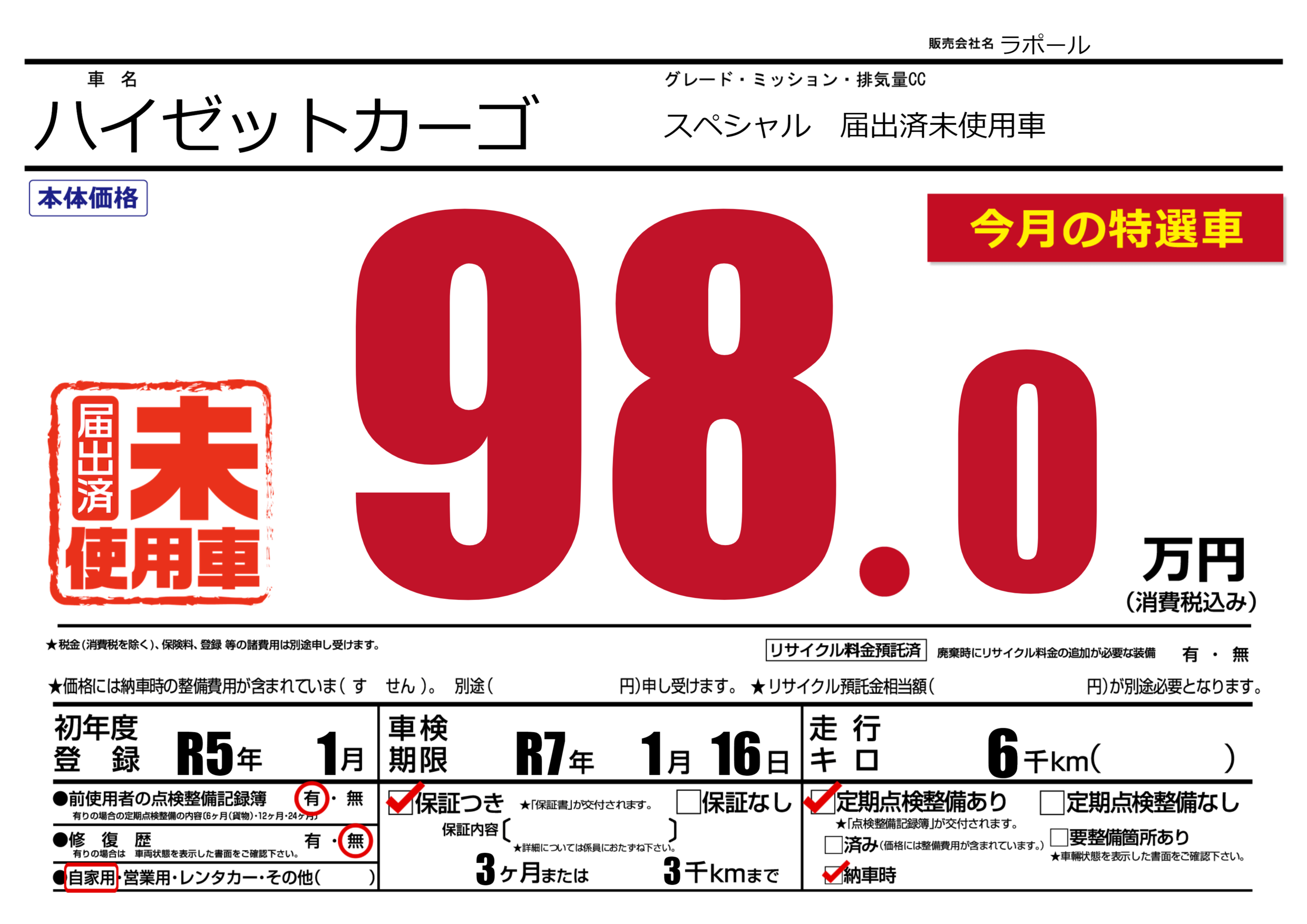 保証付き 保証内容(---) 3ヶ月または(3)千kmまで |