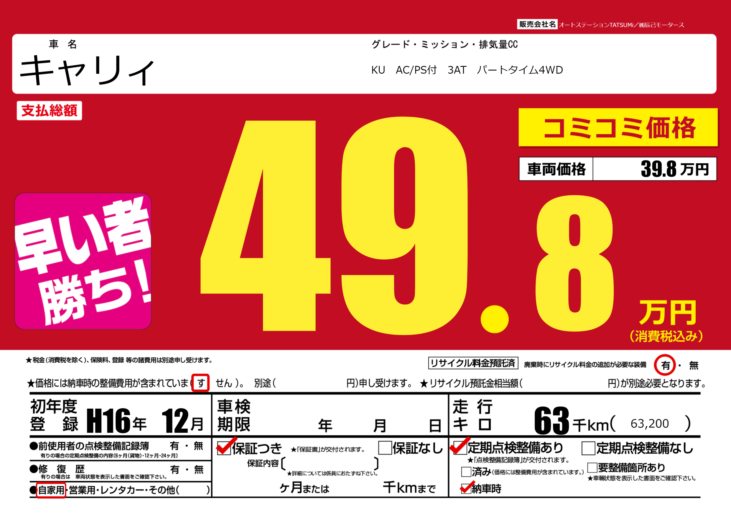 | 車名 | キャリィ | グレード ミッション 排気量 |