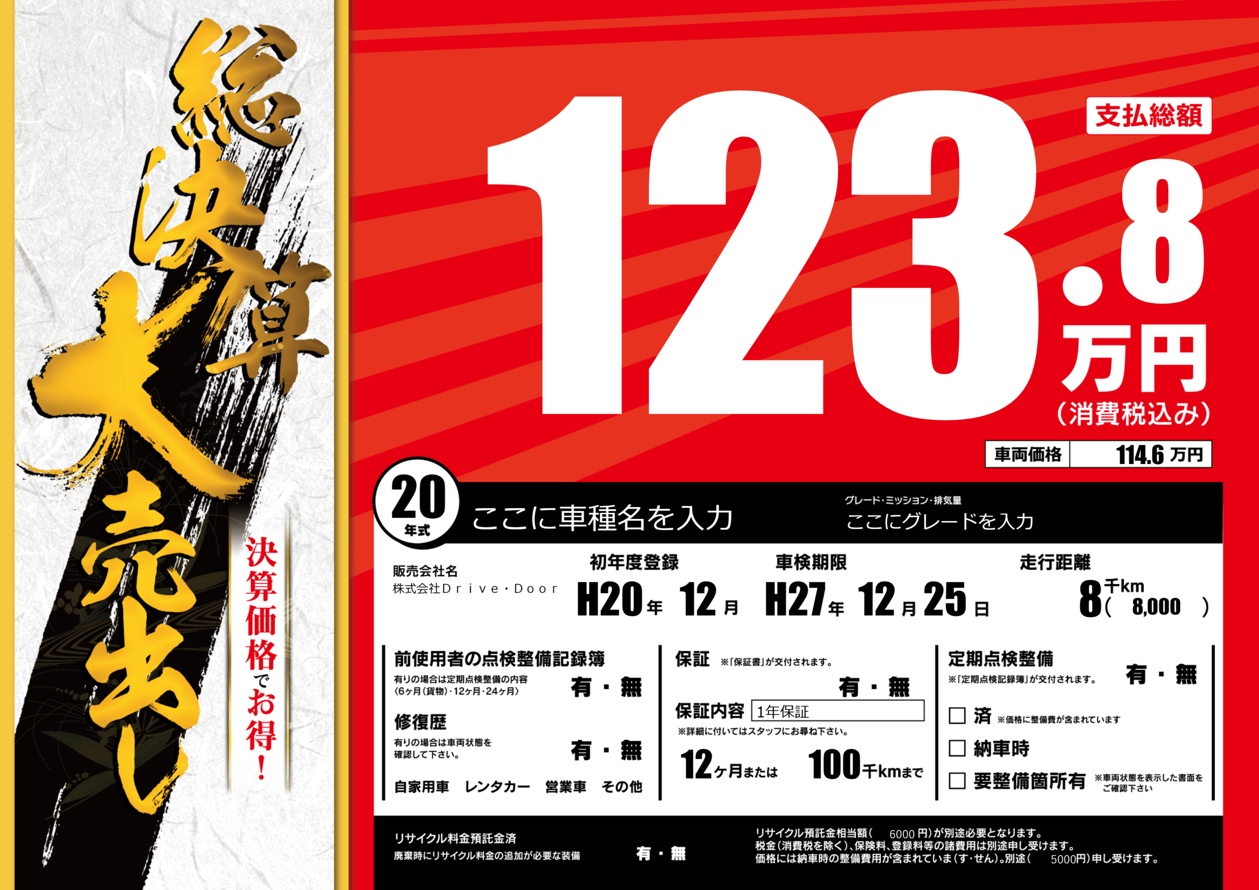 保証なし 保証内容(1年保証) 12ヶ月または(100)千kmまで |