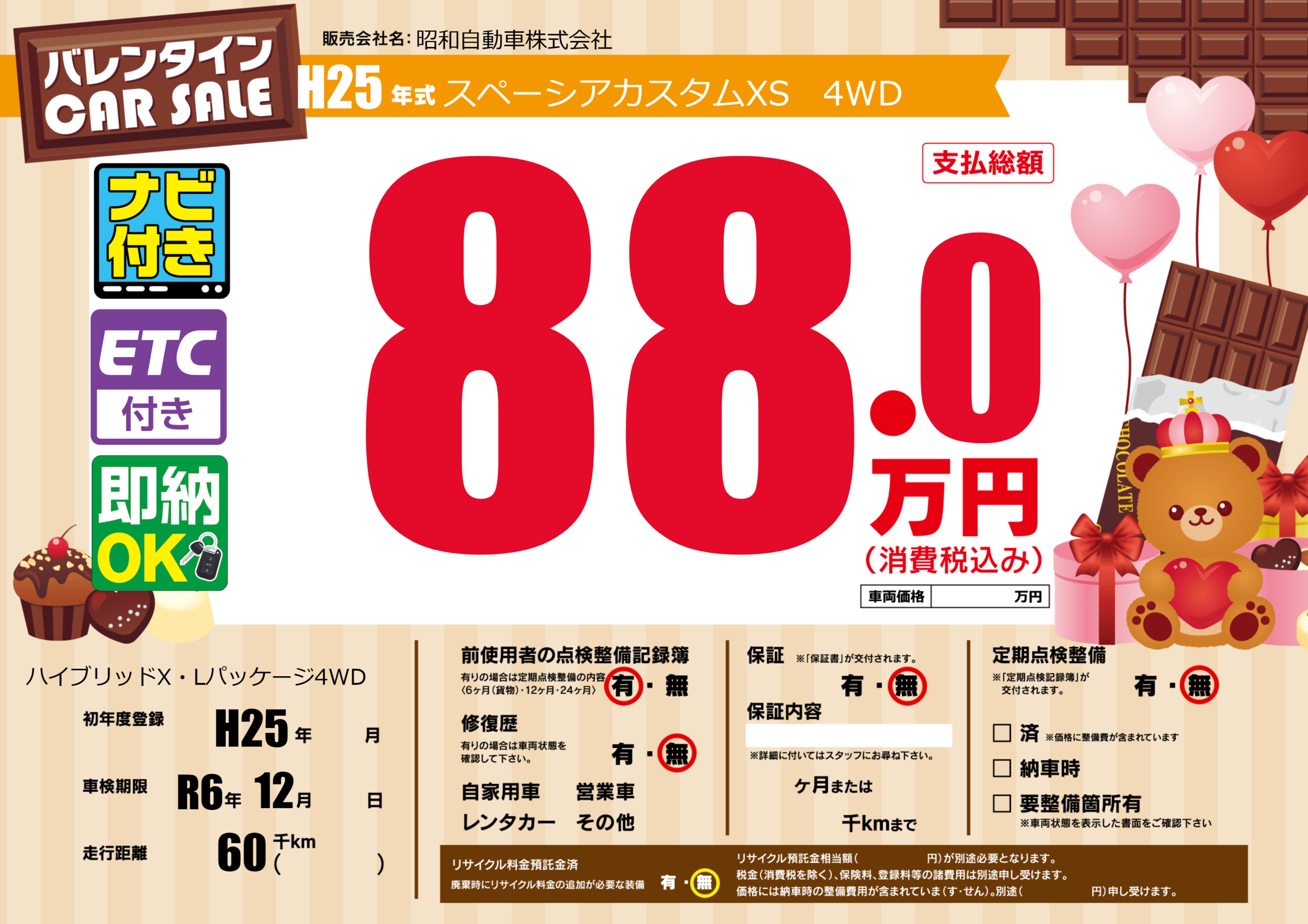 | 車検制限 | R6年 12月 - 日 | ||