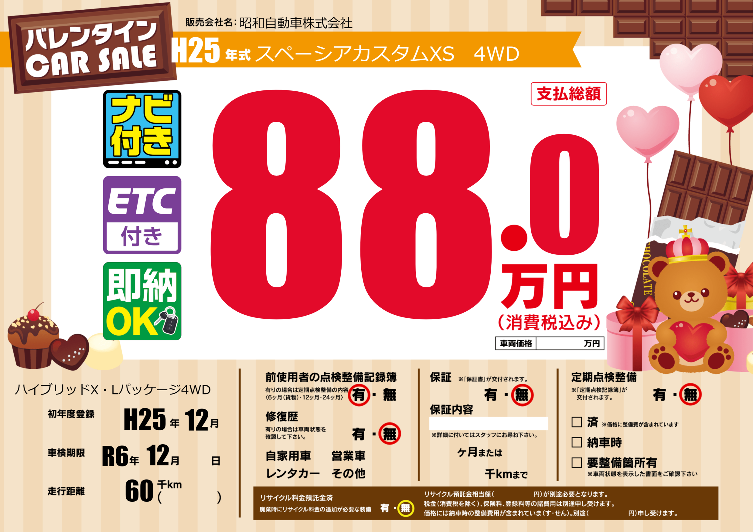| 走行キロ | 6万km | 初年度登録 | H25年12月 |