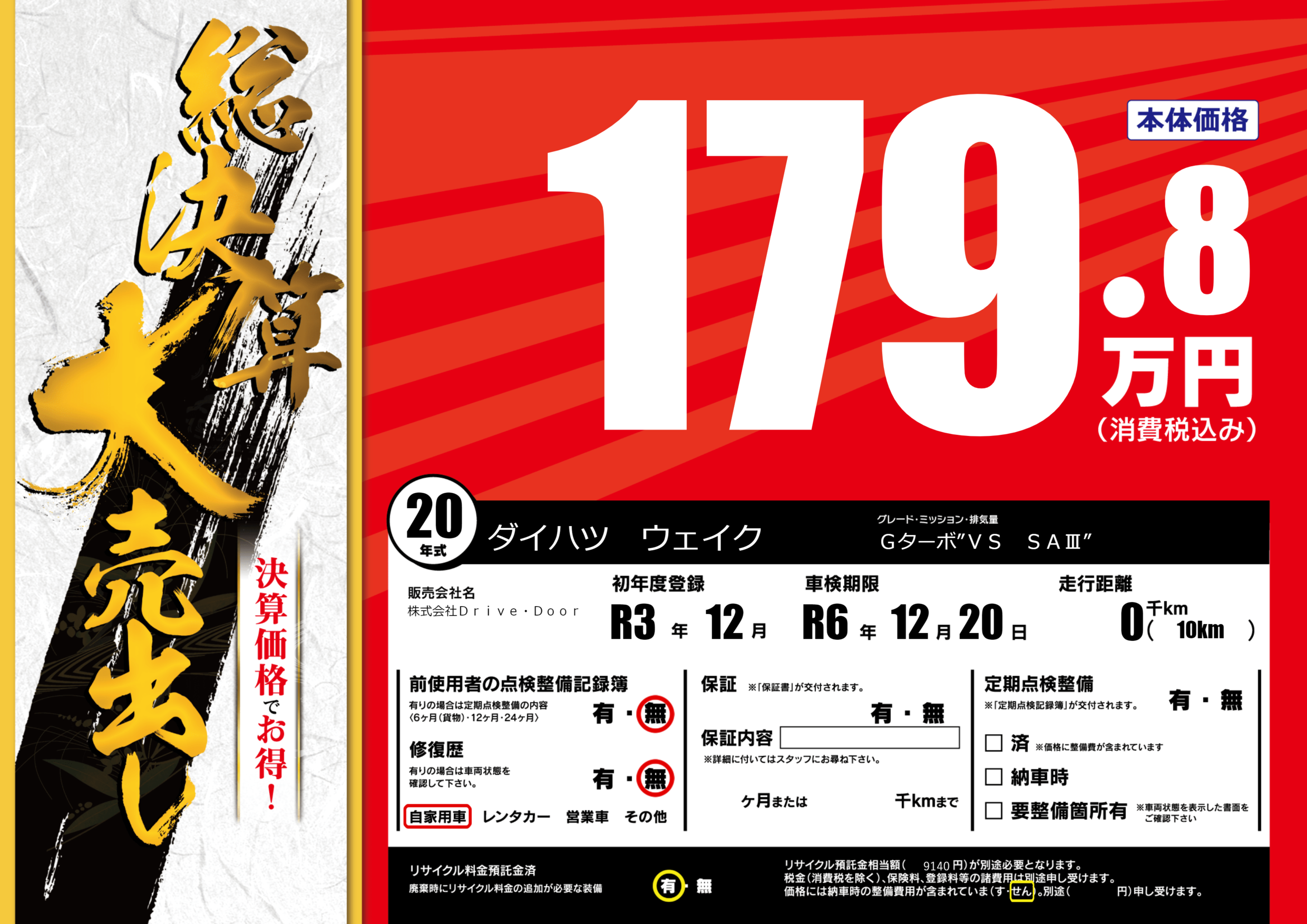 | 走行キロ | - | 初年度登録 | R3年12月 |