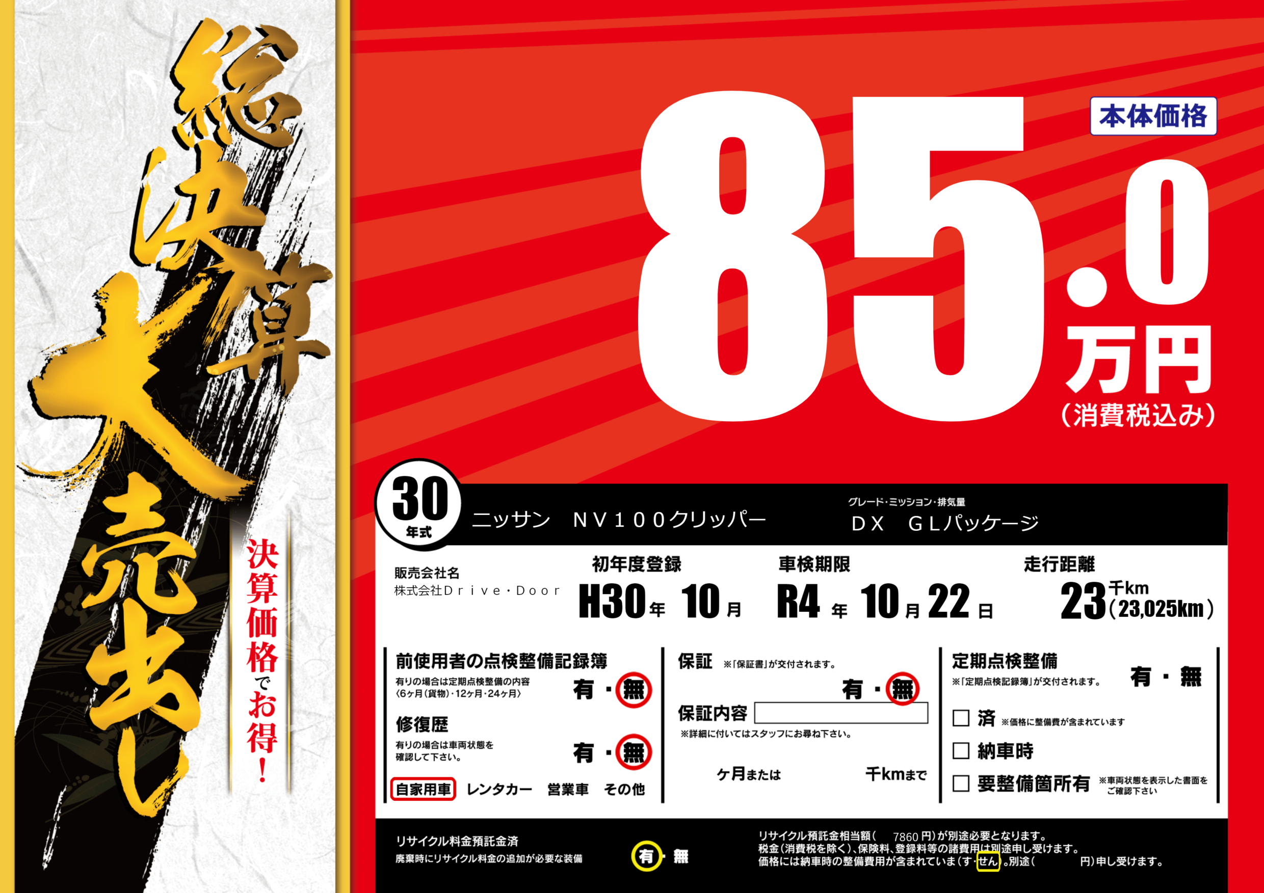 なし | 車検制限 | R4年10月22月 |