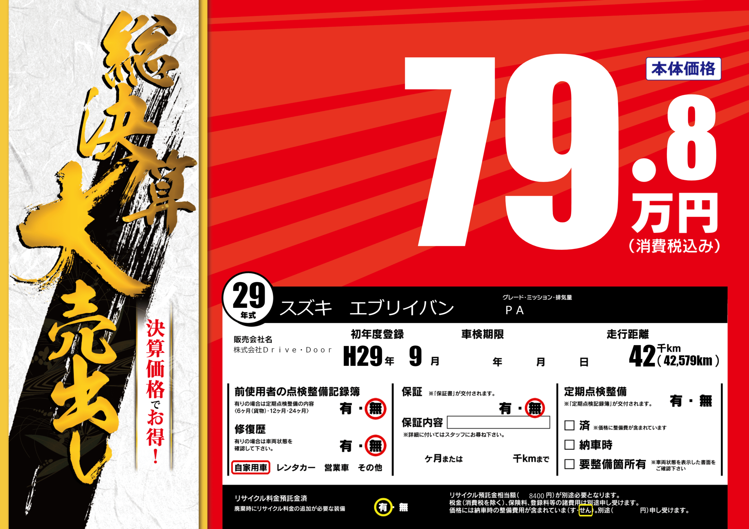 | 車名 | スズキ エブリイバン | グレード ミッション 排気量 |