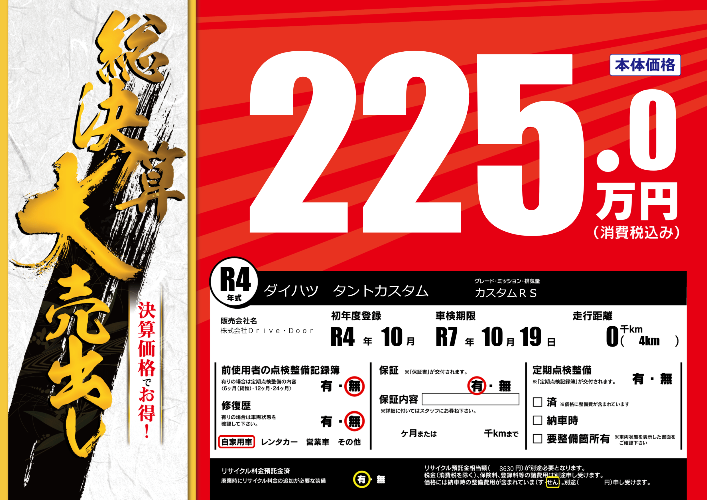| 走行キロ | - | 初年度登録 | R4年10月 |