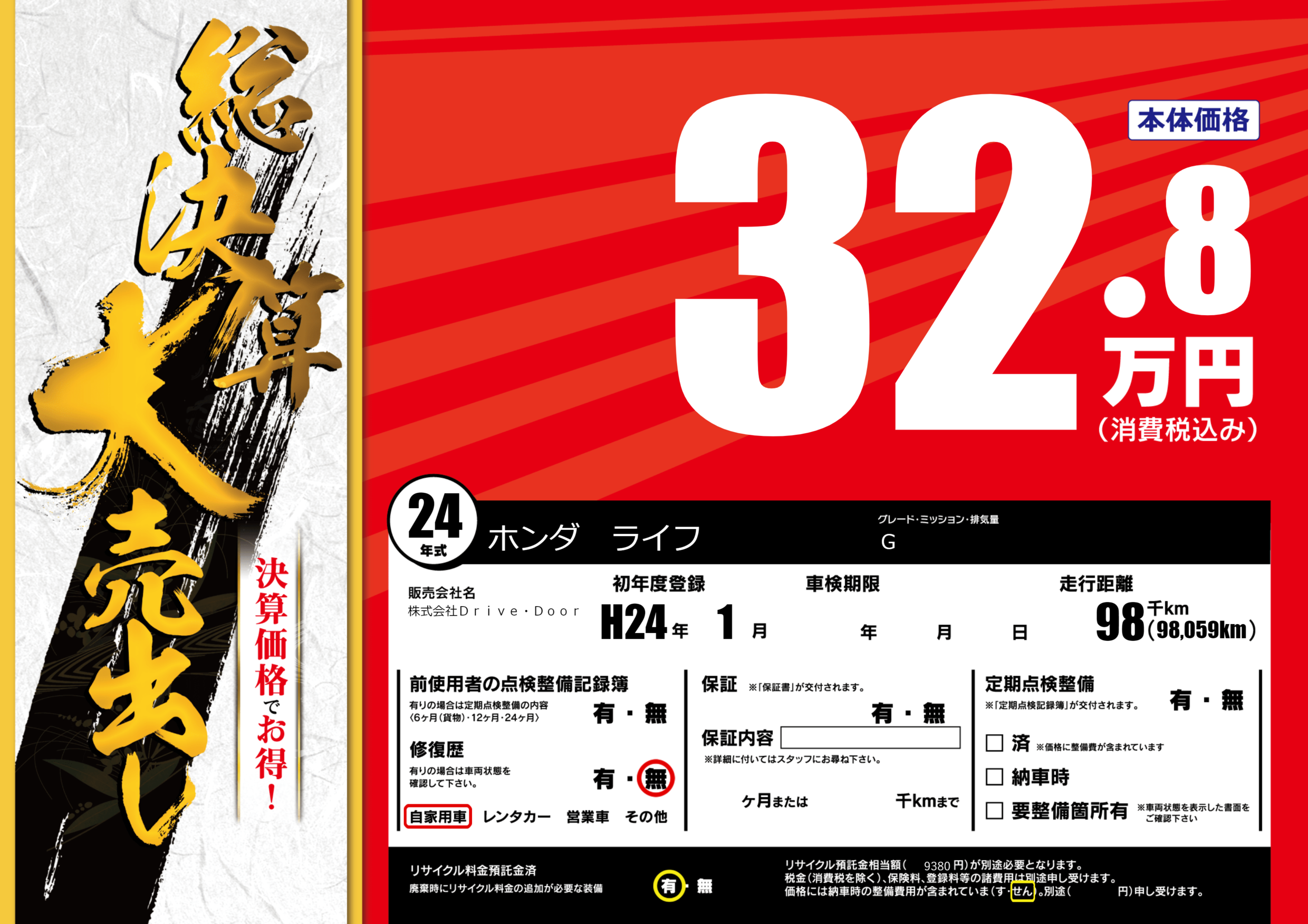 | 車名 | ホンダ ライフ | グレード ミッション 排気量 |