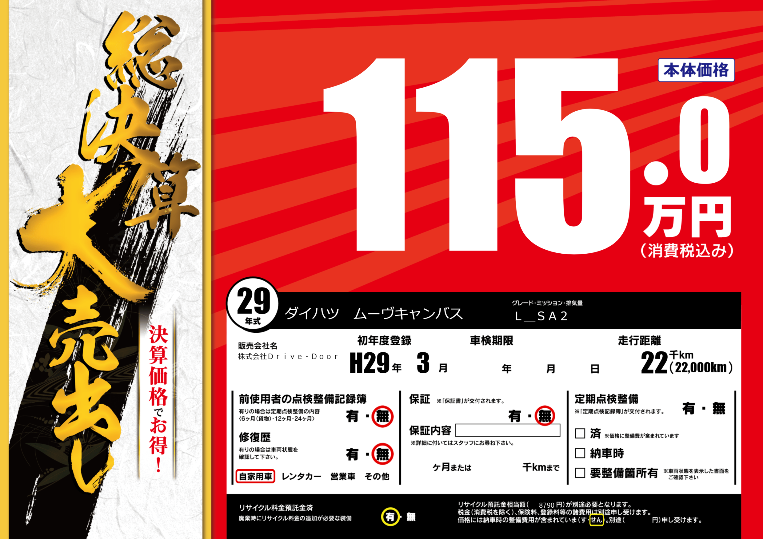| 車検制限 | - 年 - 月 - 日 | ||