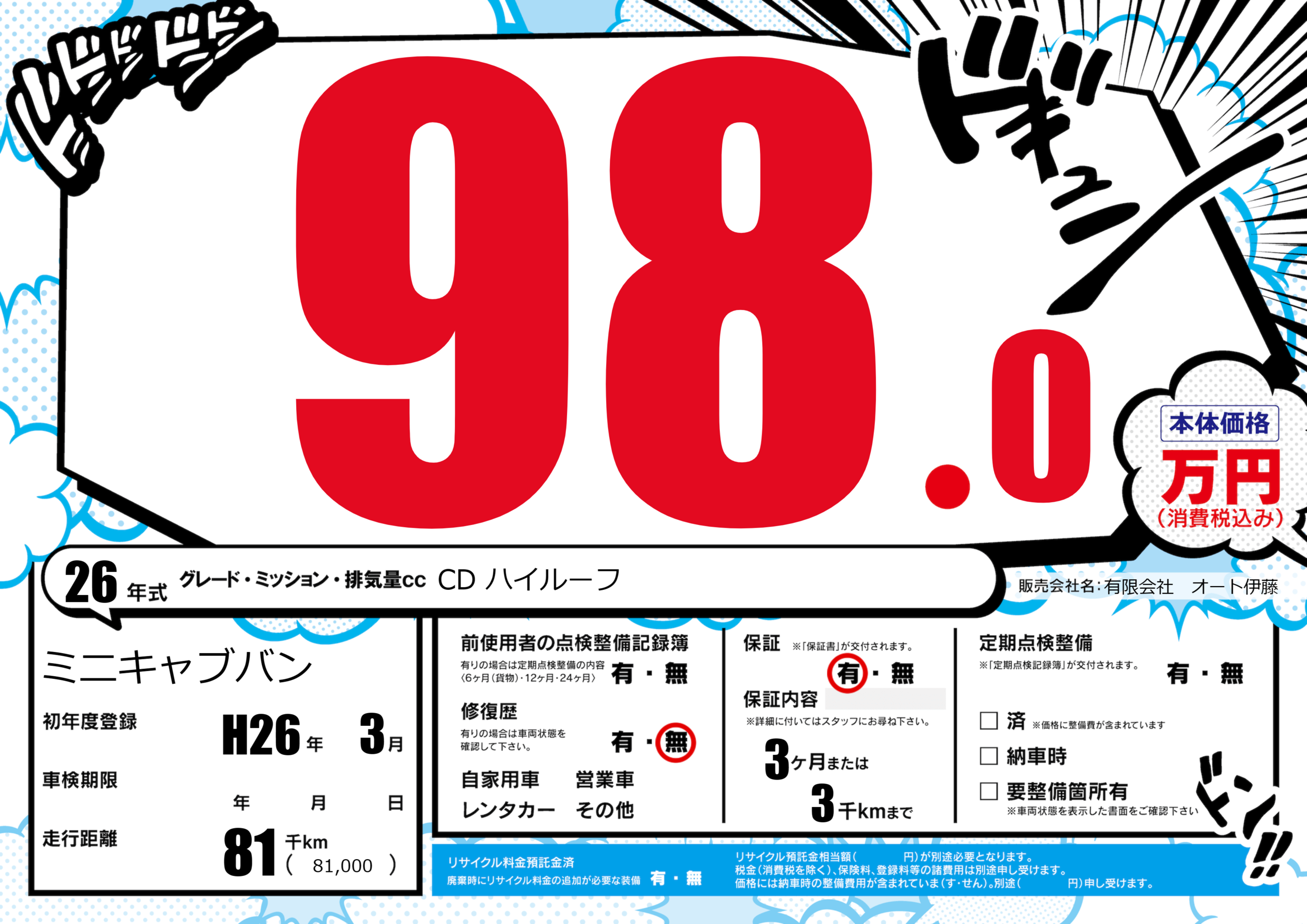 保証付き 保証内容(---) 3ヶ月または(3)千kmまで |