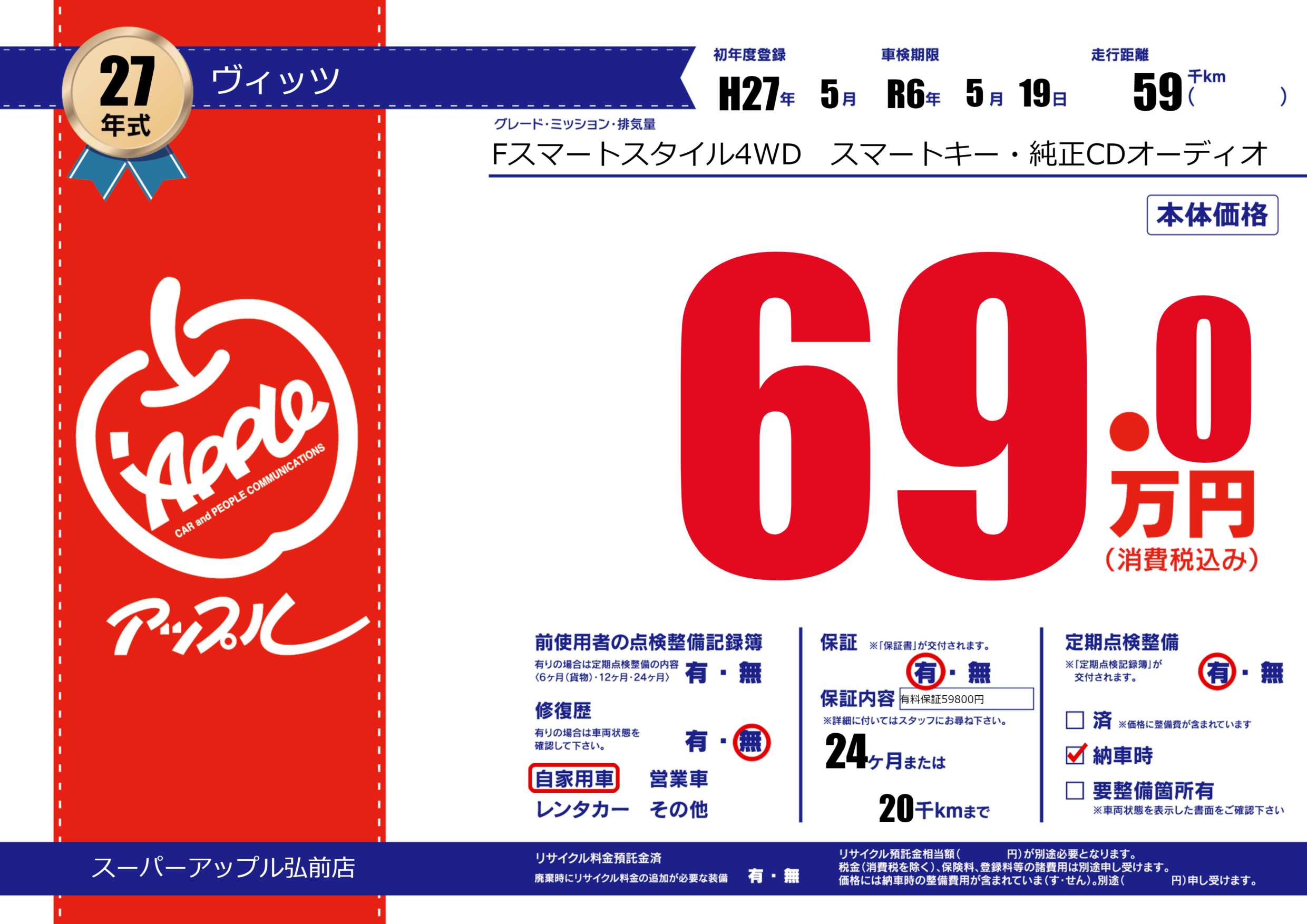 | 走行キロ | 5.9万km | 初年度登録 | H27年5月 |