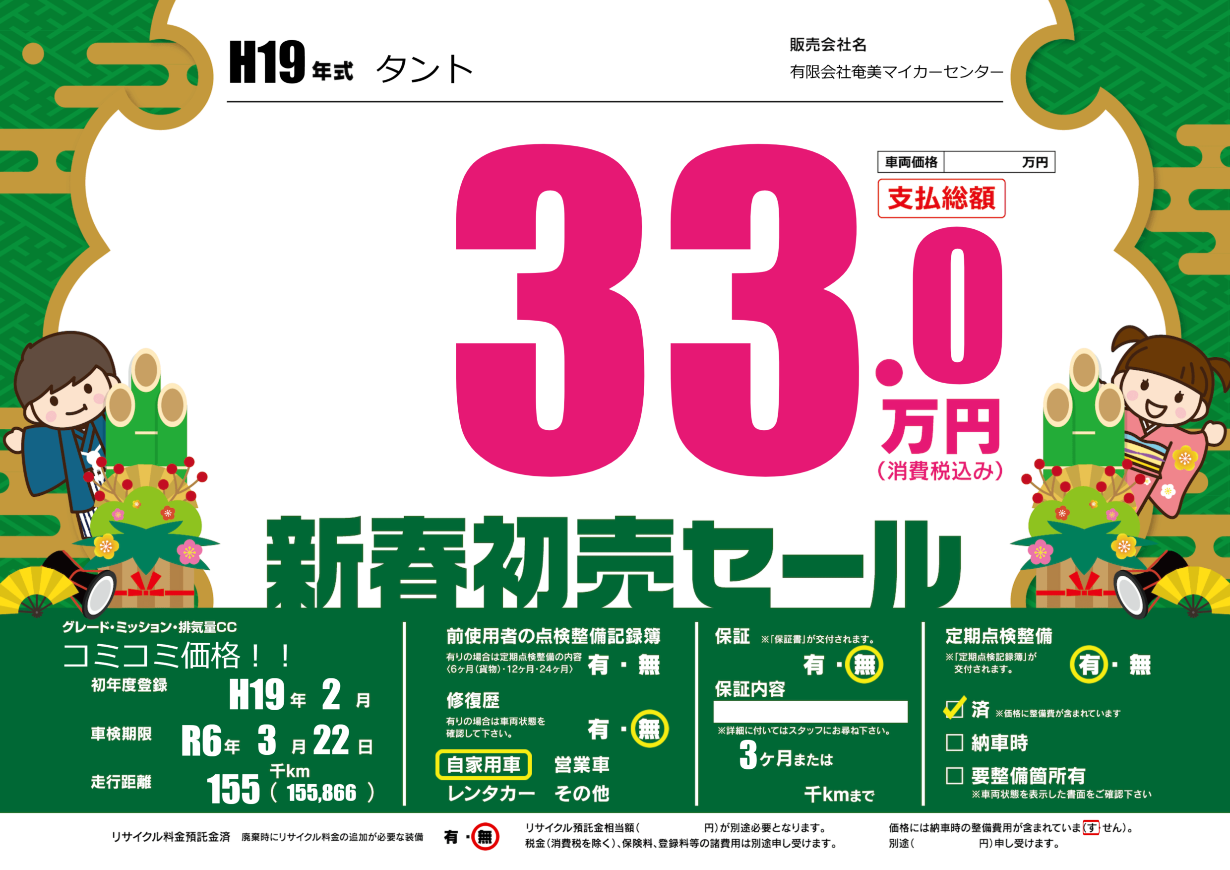 | 定期点検整備 | 定期点検整備あり 定期点検整備済み | ||