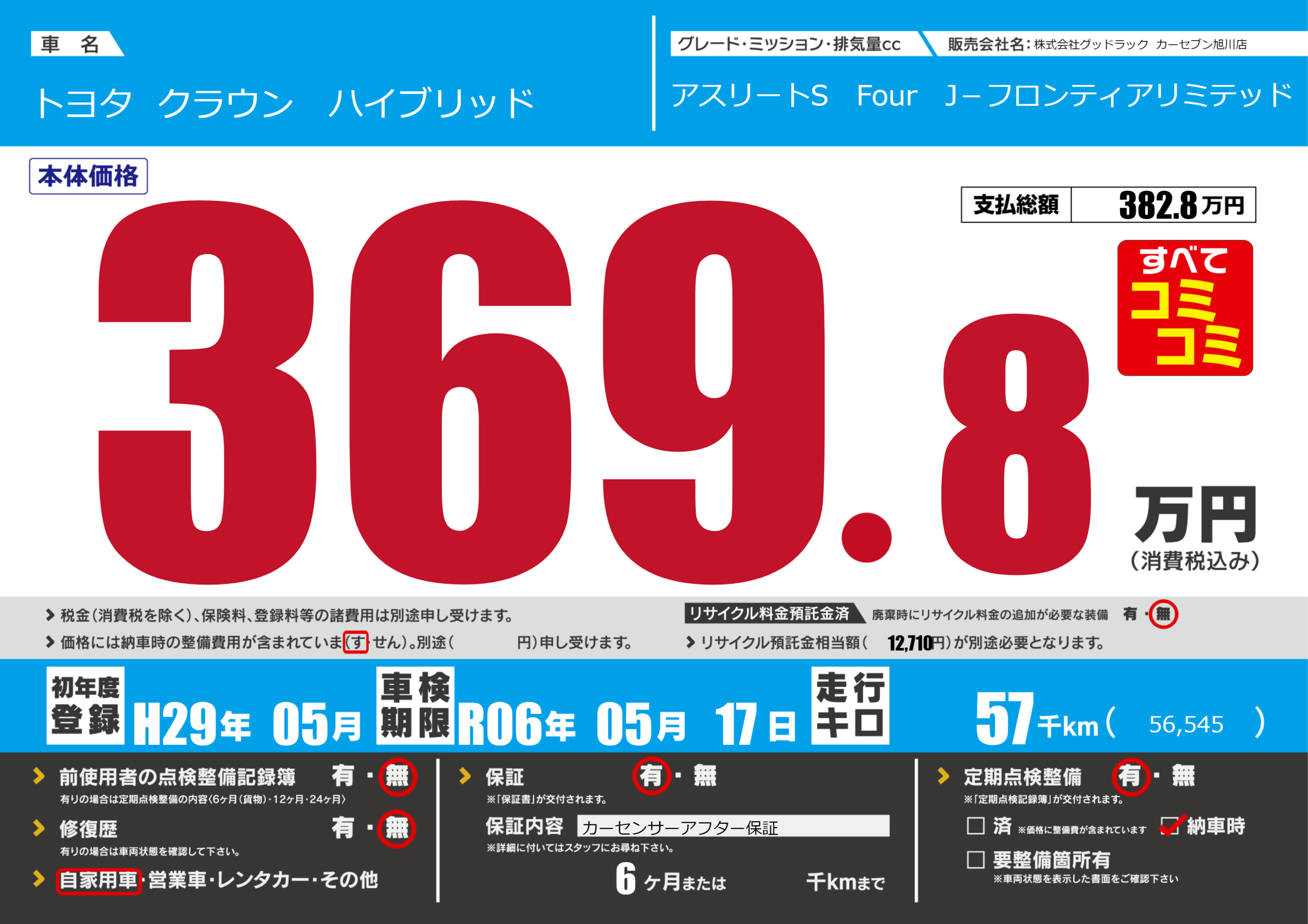 | 車名 | トヨタ クラウン ハイブリッド | グレード ミッション 排気量 |