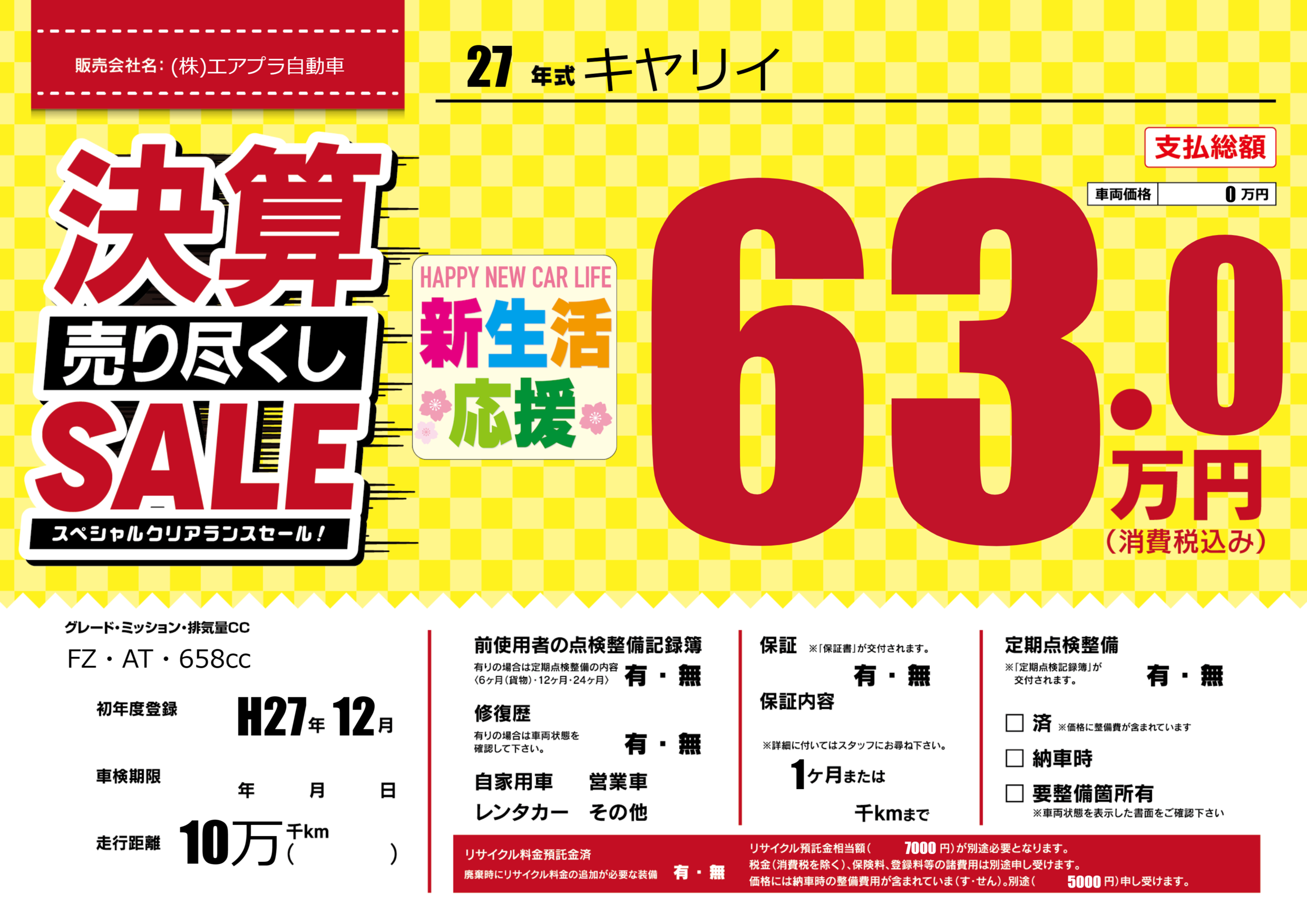 | 車名 | キヤリイ | グレード ミッション 排気量 |