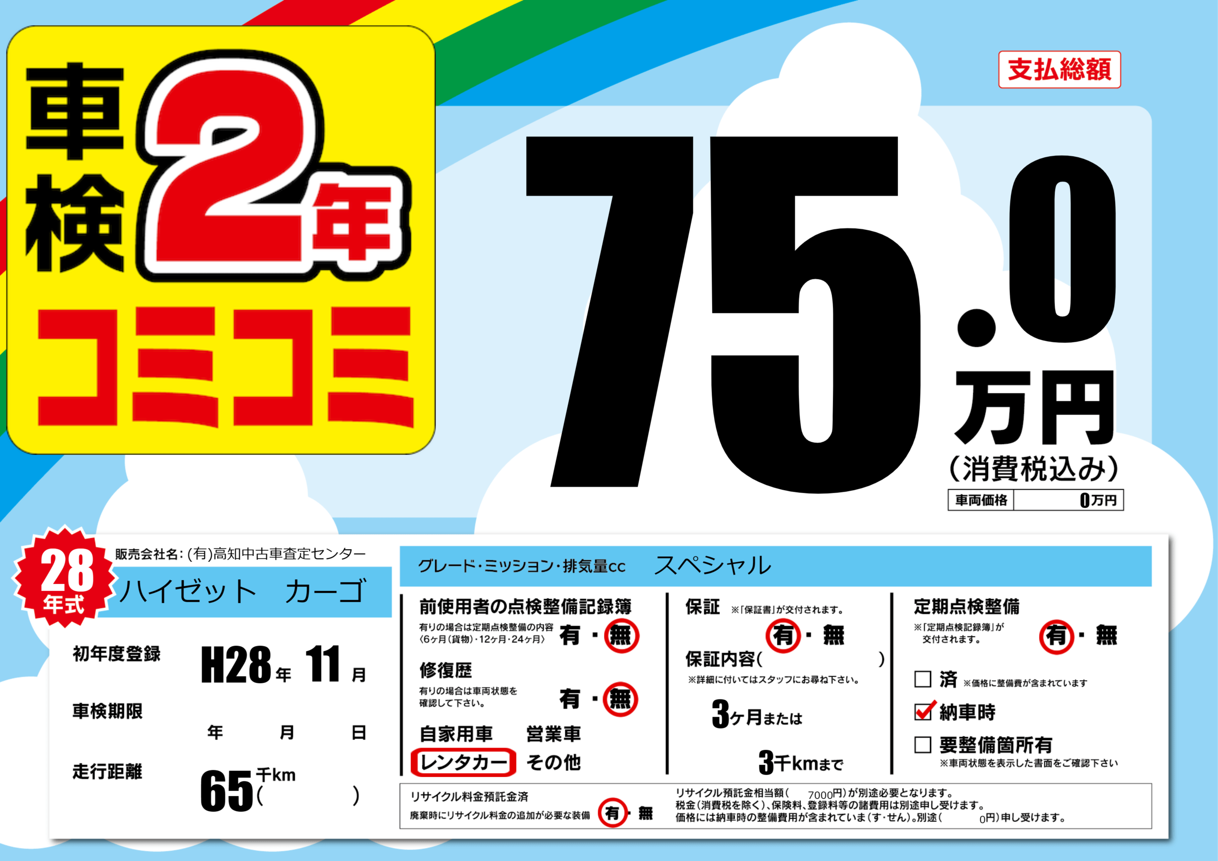 保証付き 保証内容(---) 3ヶ月または(3)千kmまで |