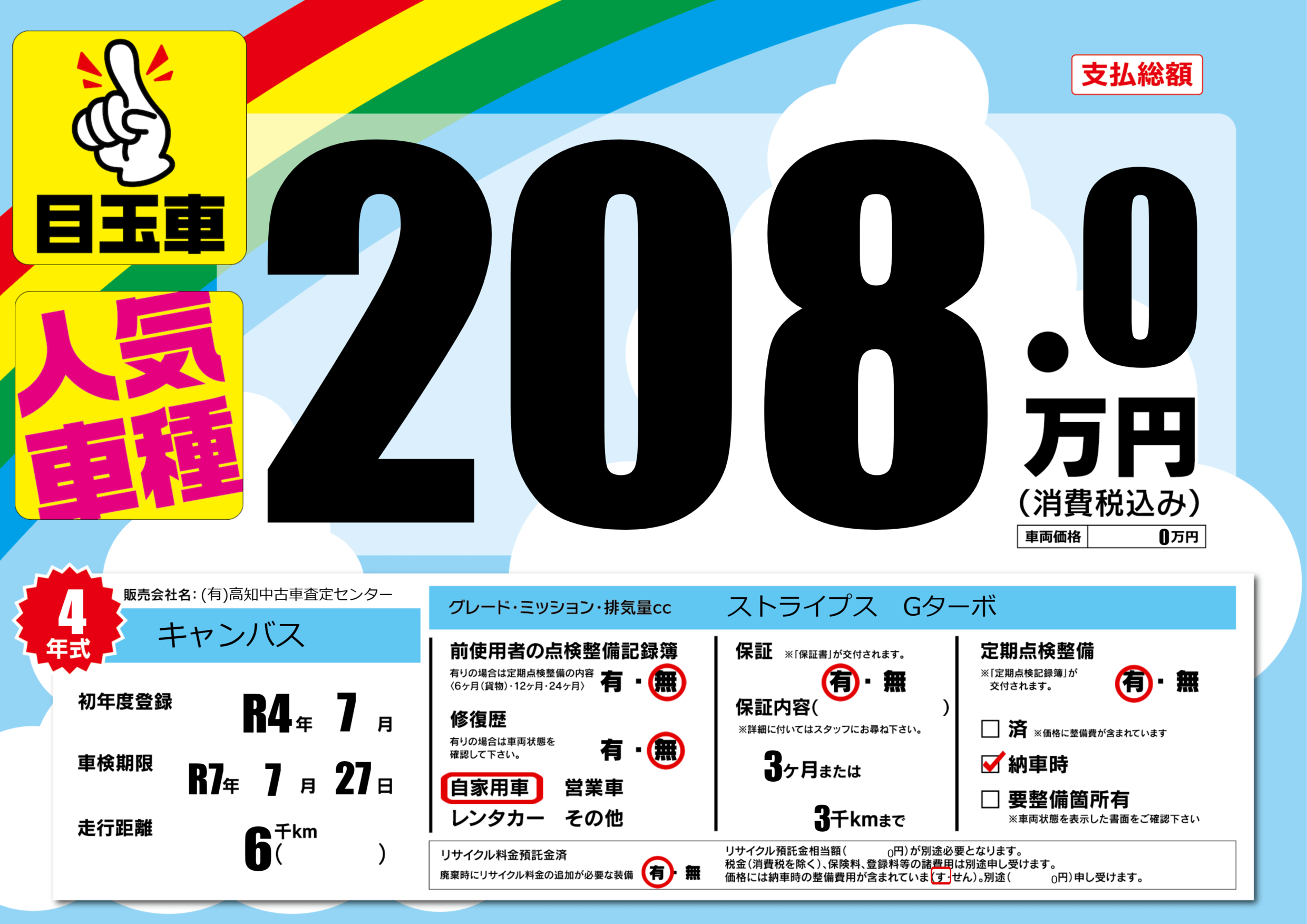 あり | 車検制限 | R7年7月27月 |
