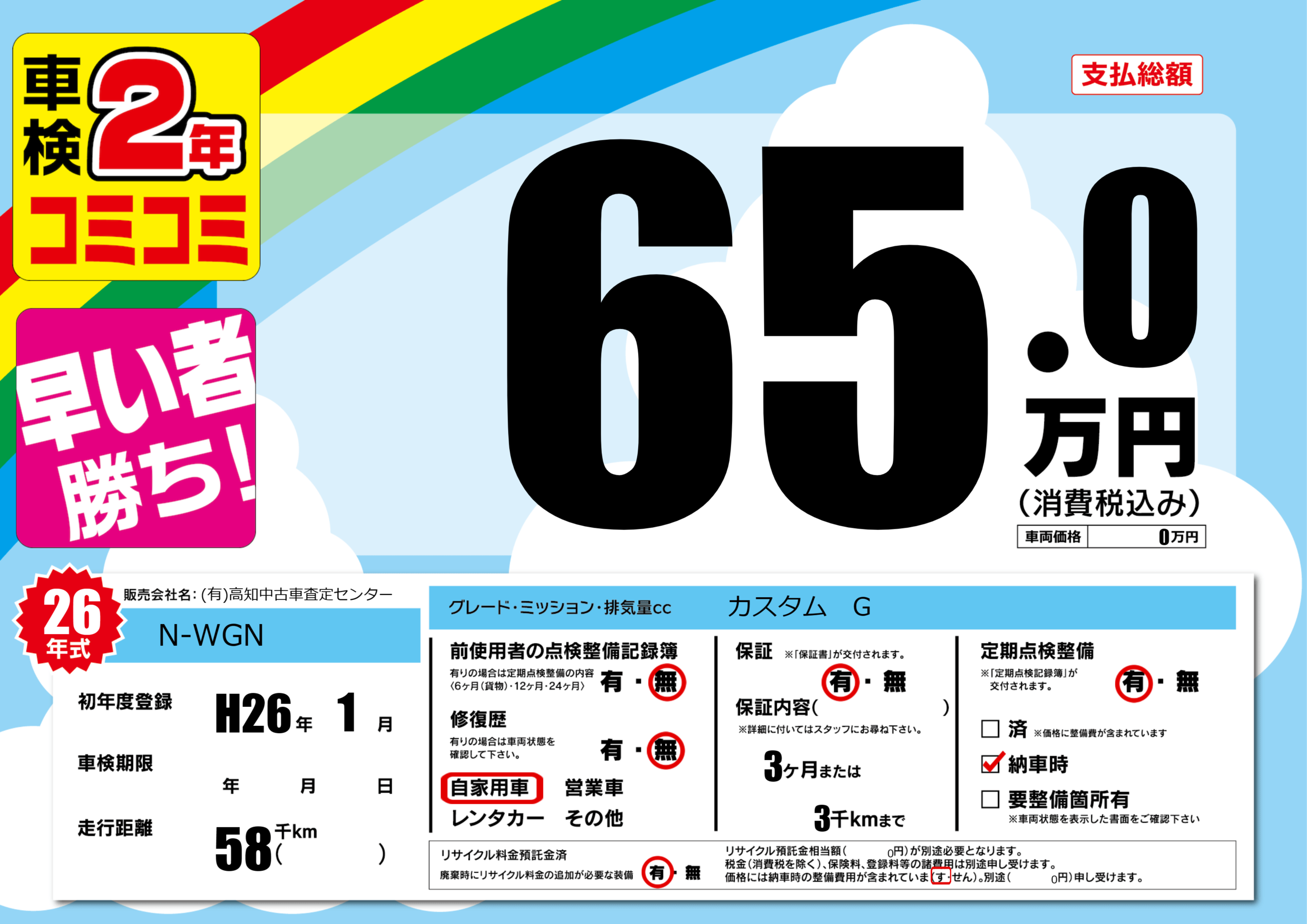 | 車名 | N-WGN | グレード ミッション 排気量 |