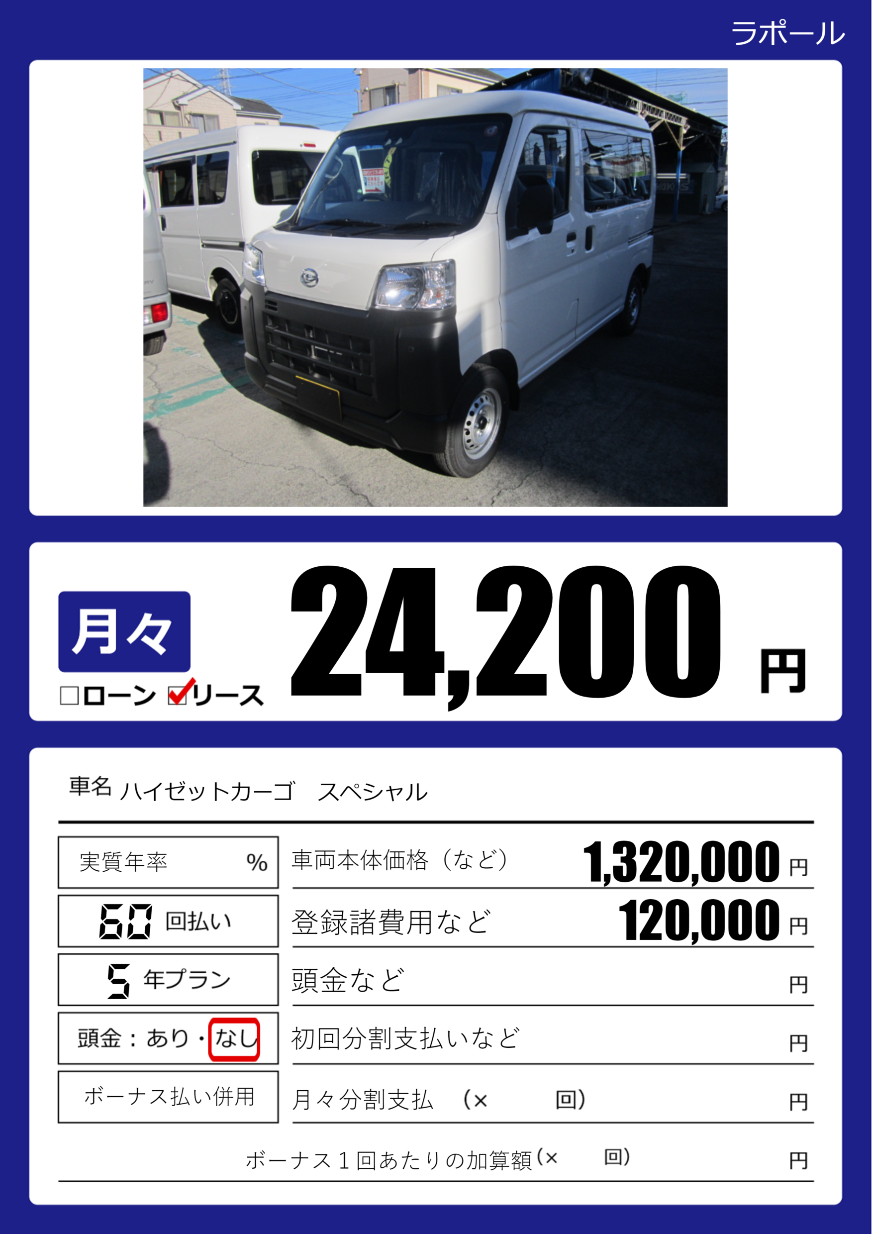 | 車名 | ハイゼットカーゴ スペシャル | グレード ミッション 排気量 |