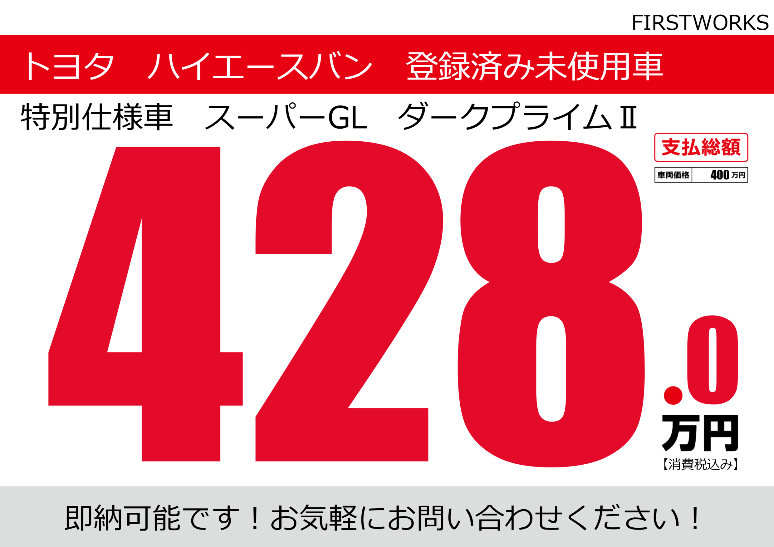 | 車名 | トヨタ ハイエースバン 登録済み未使用車 | グレード ミッション 排気量 |