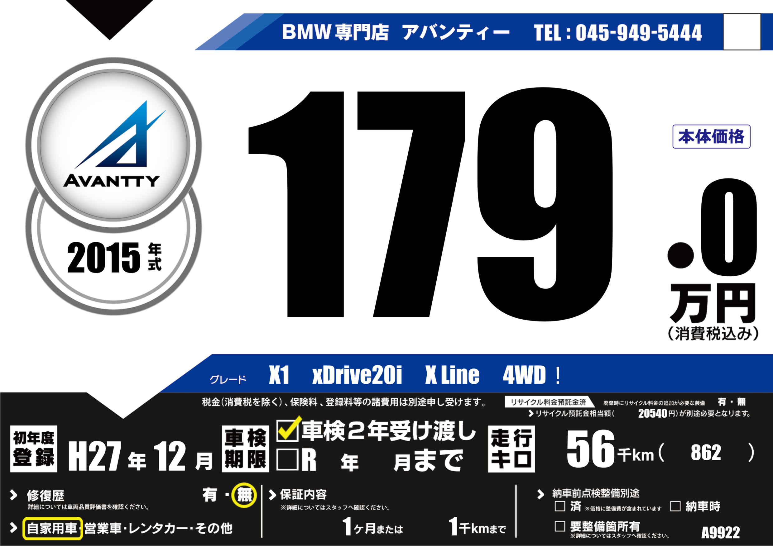 | 走行キロ | 5.6万km | 初年度登録 | H27年12月 |
