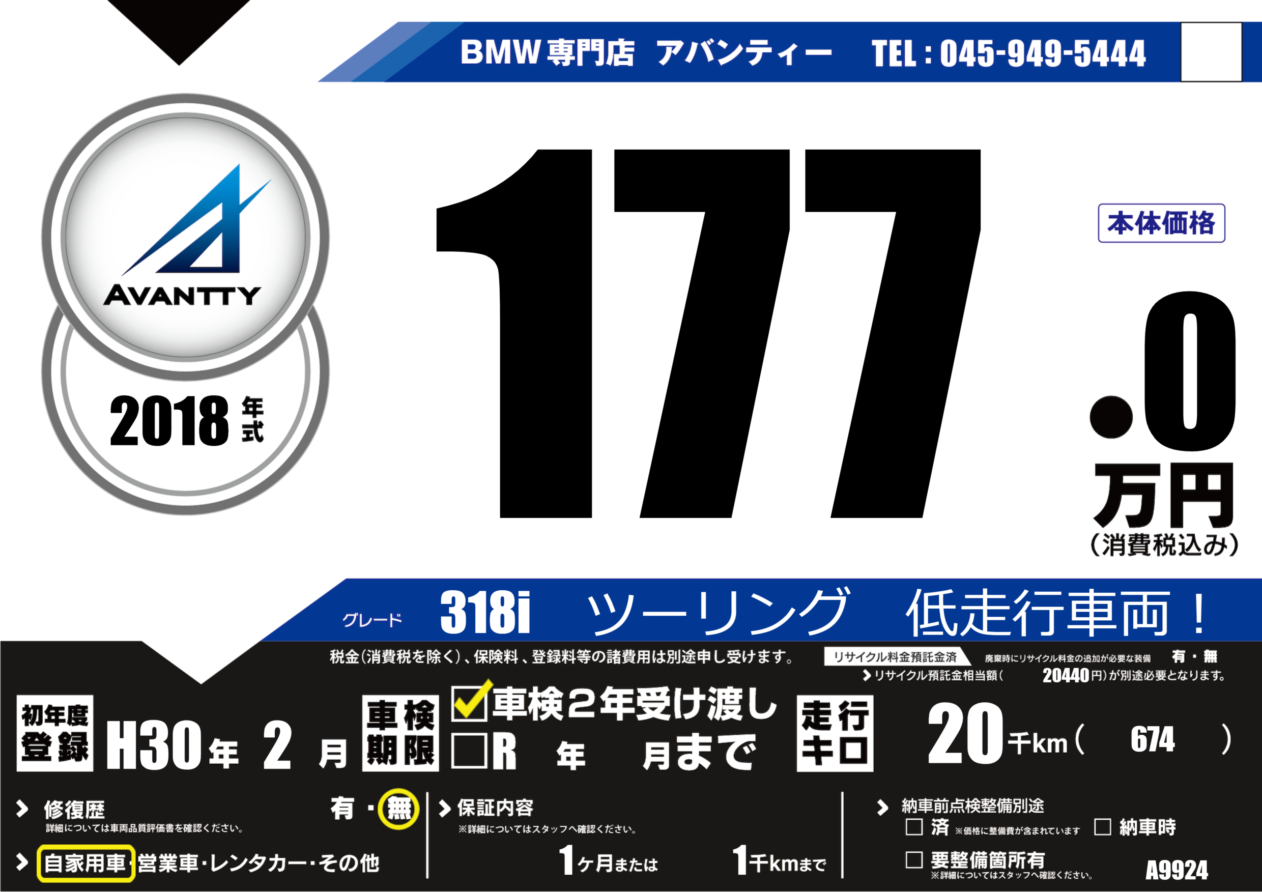 | 走行キロ | 2万km | 初年度登録 | H30年2月 |