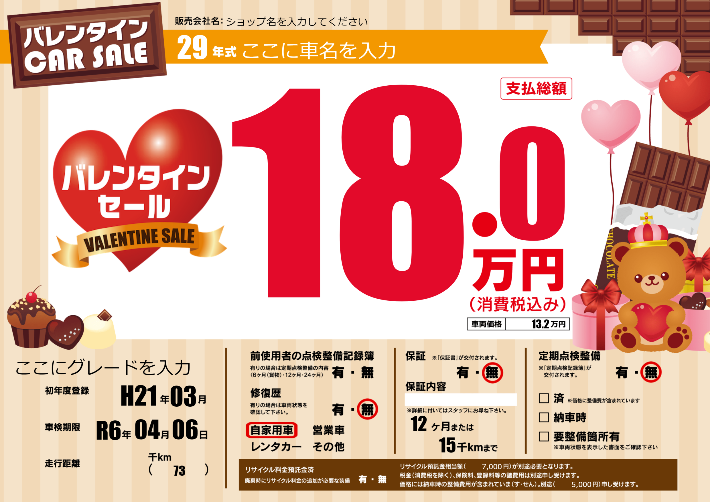 | 車名 | ここに車名を入力 | グレード ミッション 排気量 |