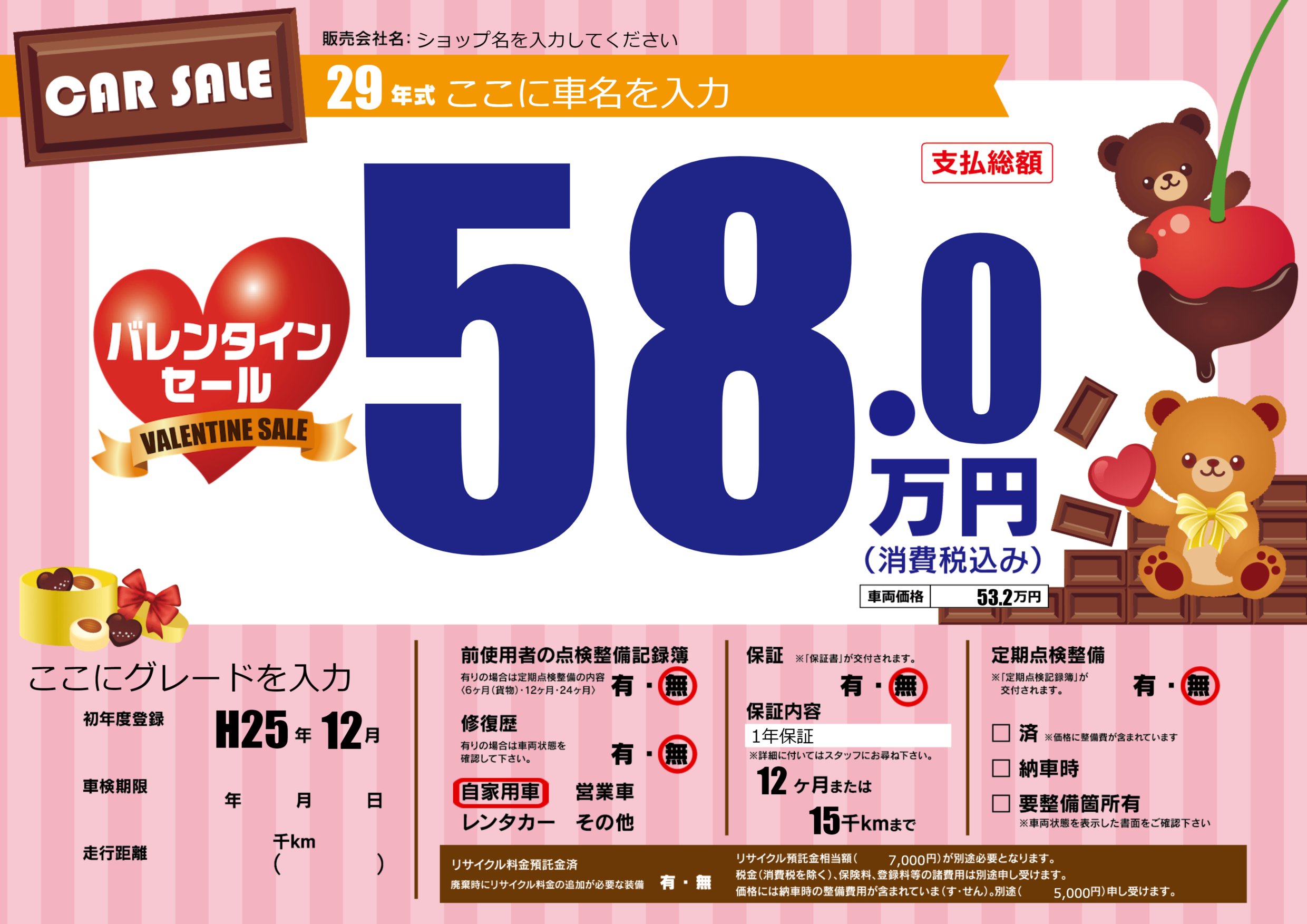 | 車名 | ここに車名を入力 | グレード ミッション 排気量 |