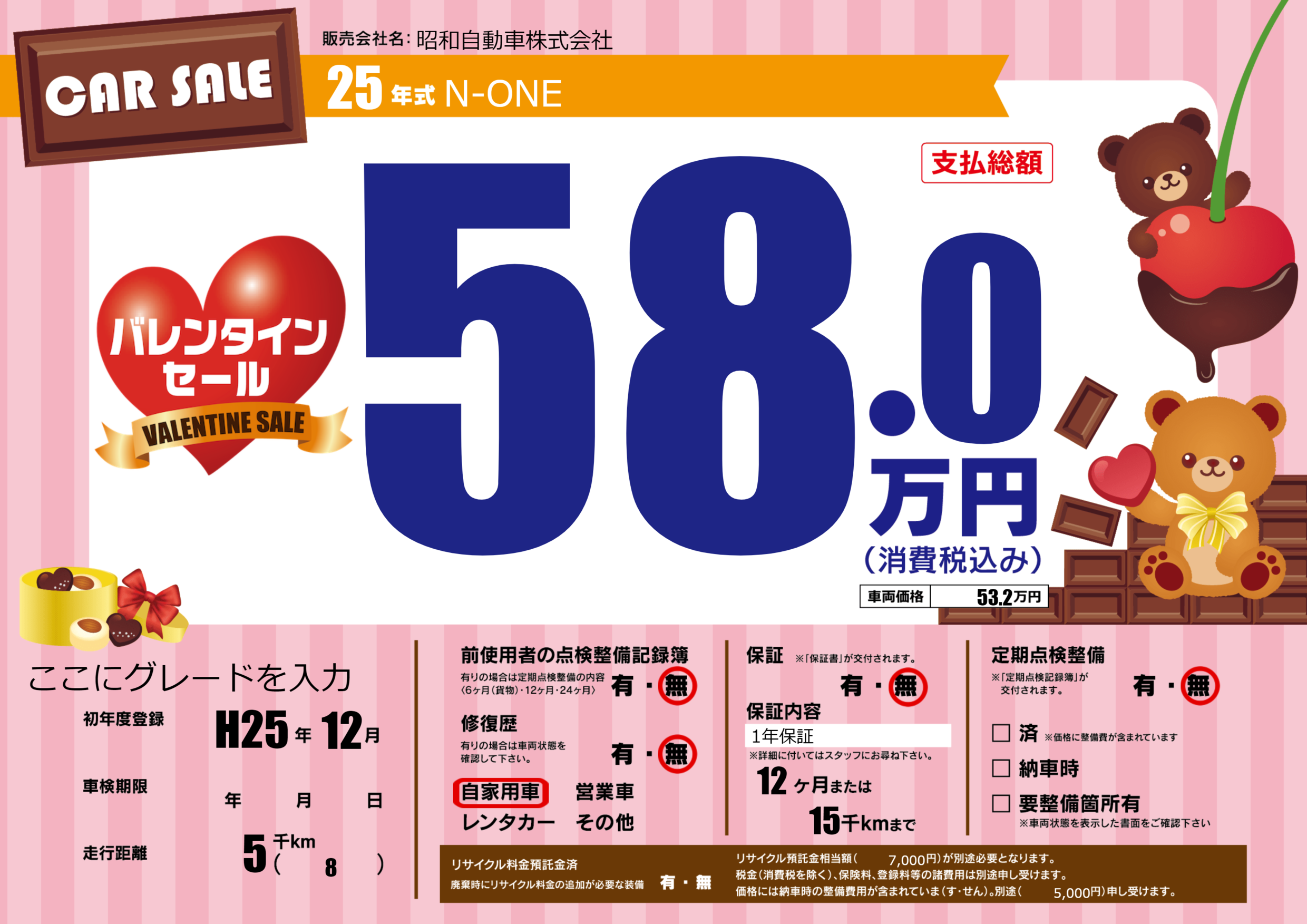 | 車検制限 | - 年 - 月 - 日 | ||
