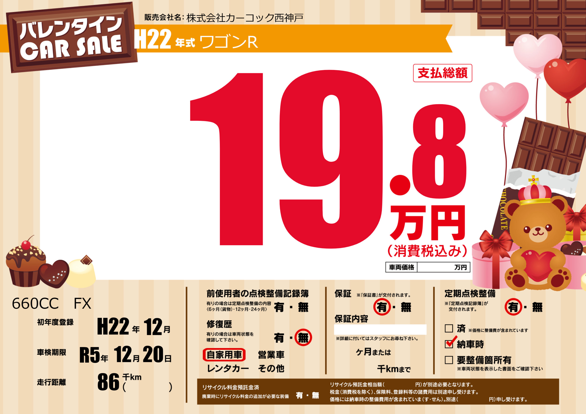 | 定期点検整備 | 定期点検整備あり 納車時あり | ||