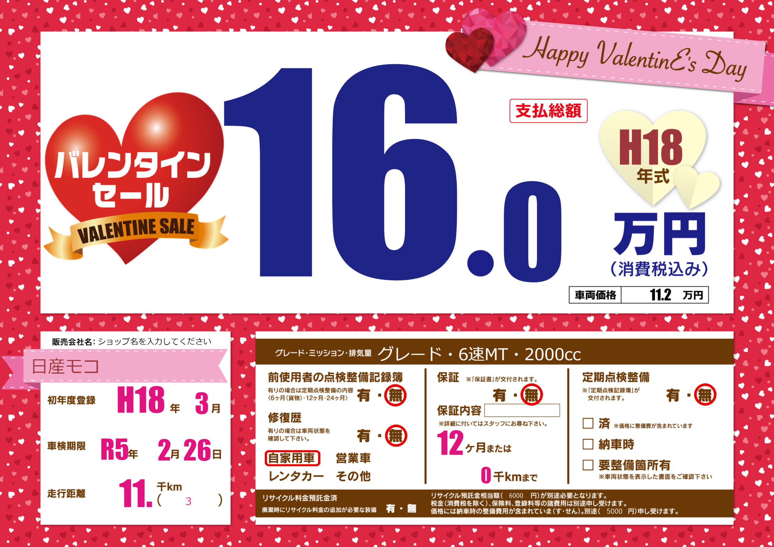保証なし 保証内容(---) 12ヶ月または(0)千kmまで |