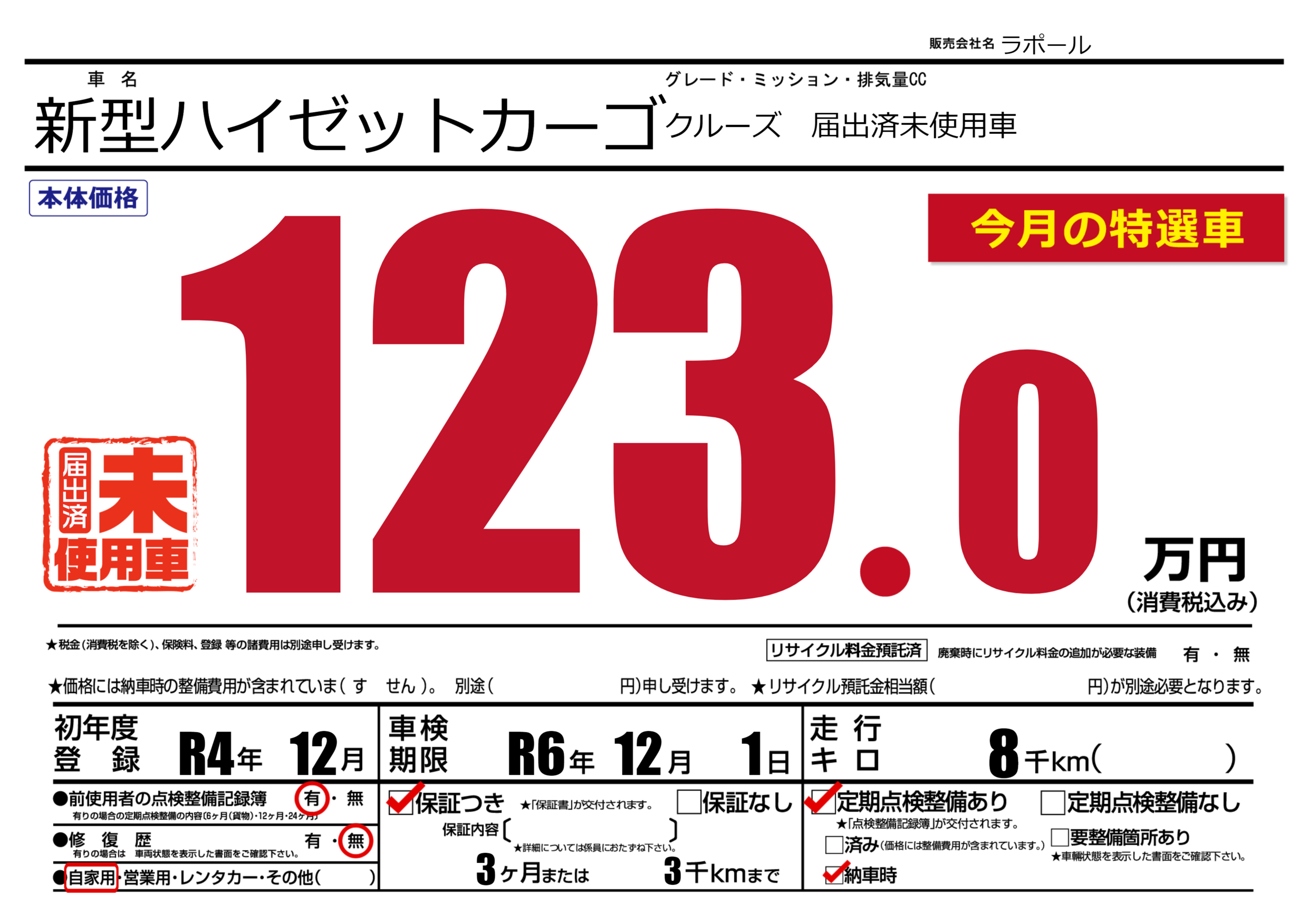 なし | 車検制限 | R6年12月1月 |