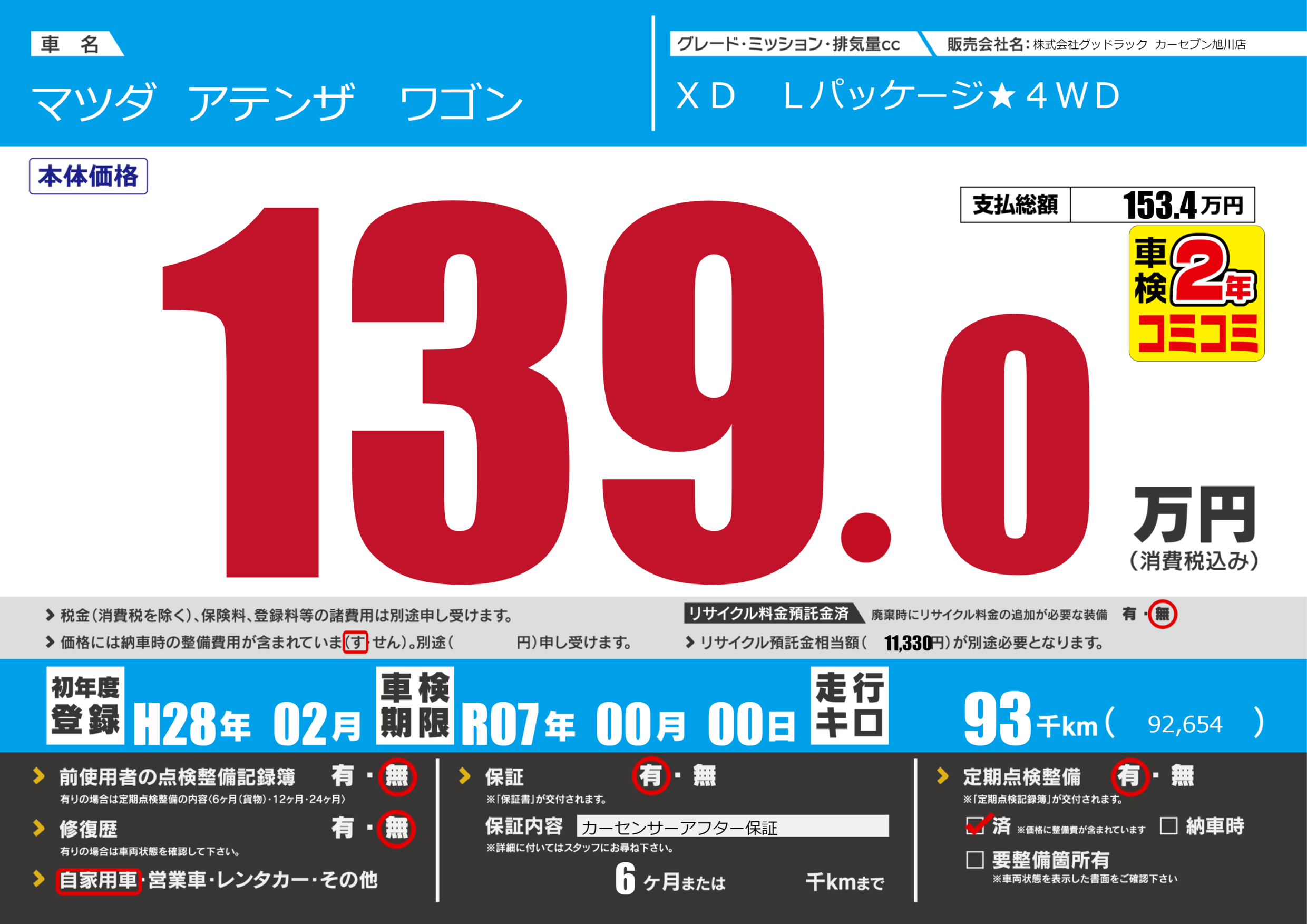 | 定期点検整備 | 定期点検整備あり 定期点検整備済み | ||