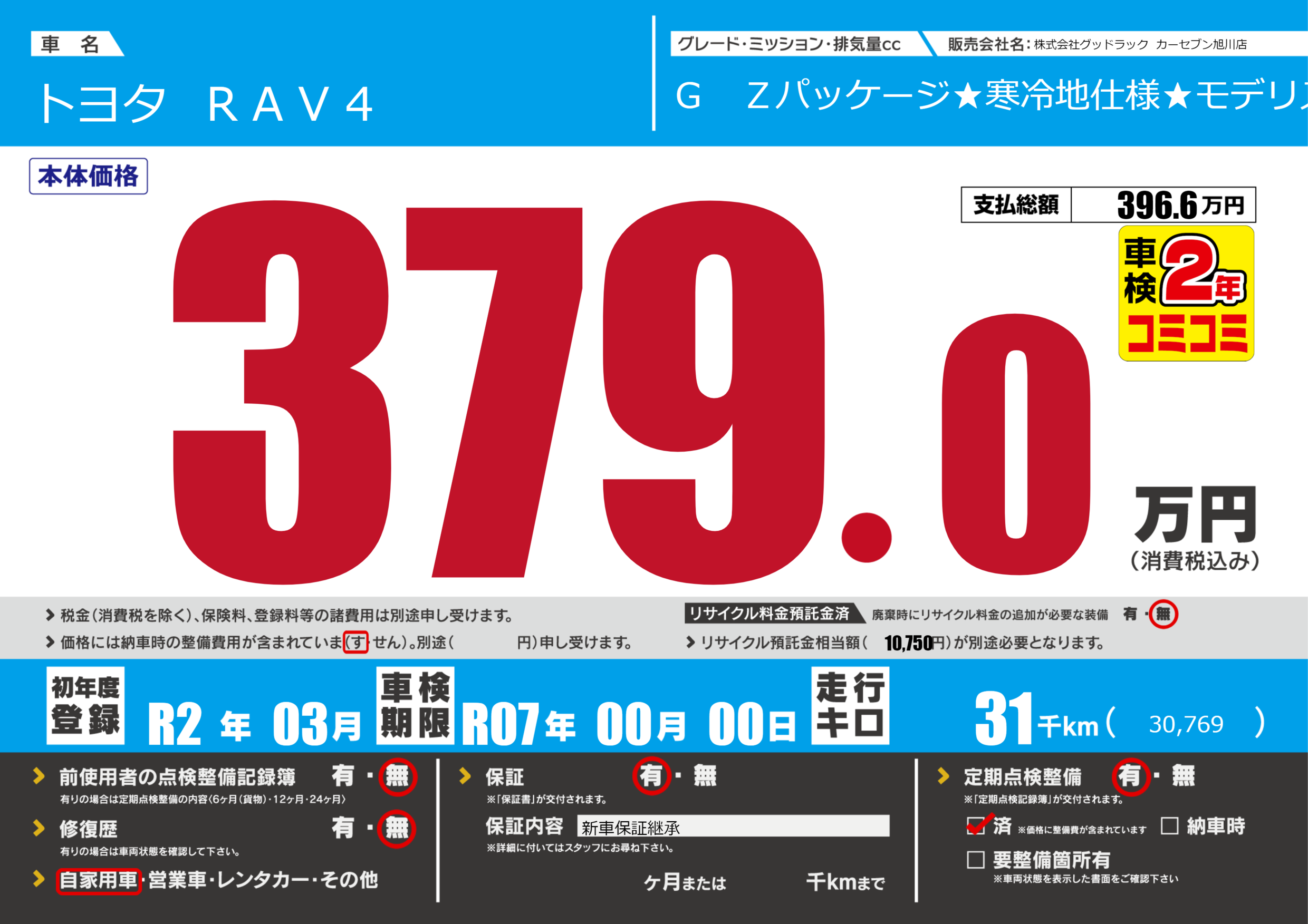 | 定期点検整備 | 定期点検整備あり 定期点検整備済み | ||