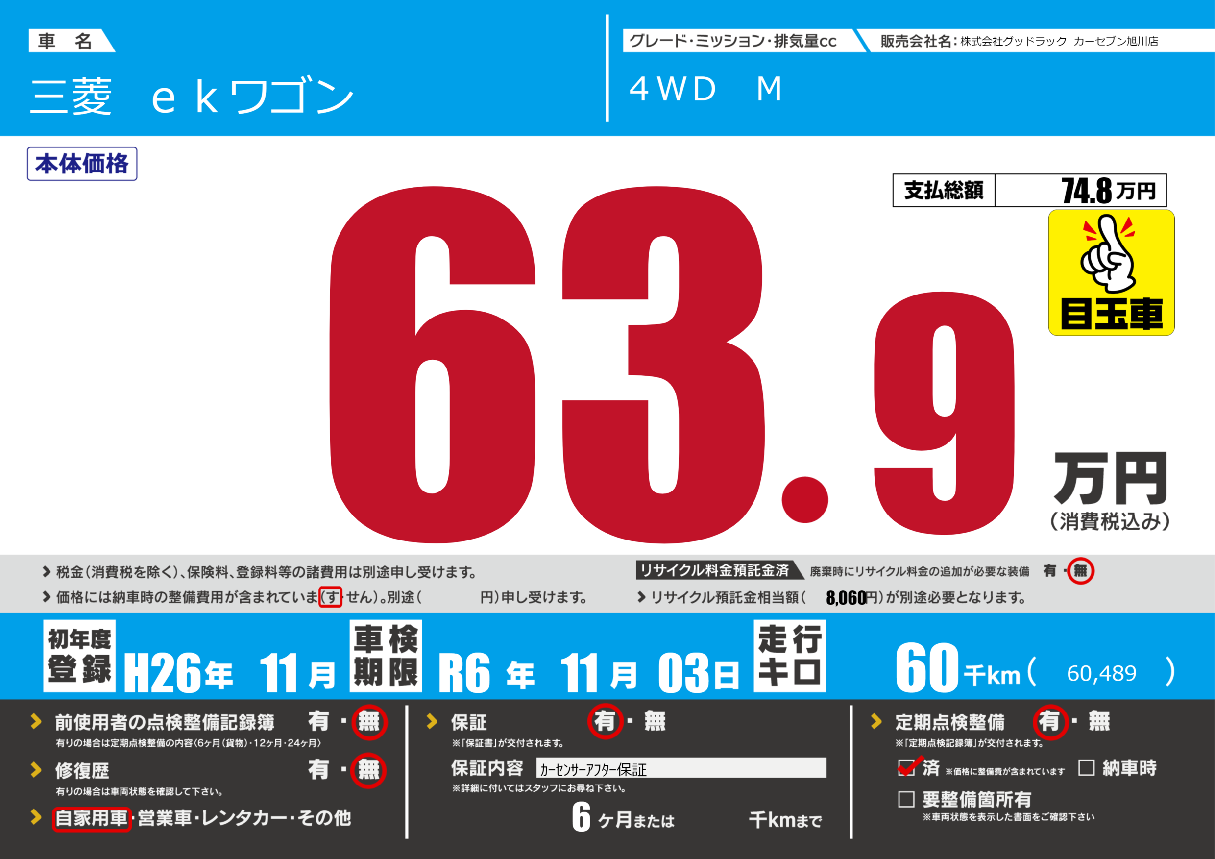 | 定期点検整備 | 定期点検整備あり 定期点検整備済み | ||