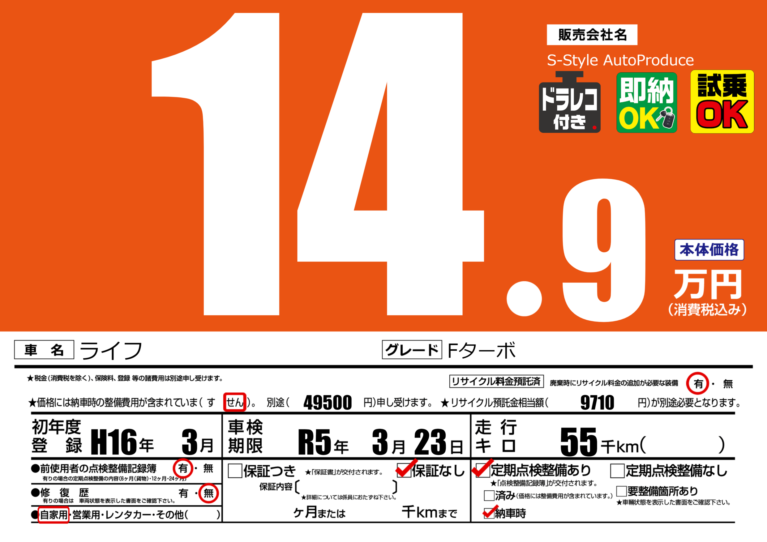 車検制限 | R5年3月23月 |