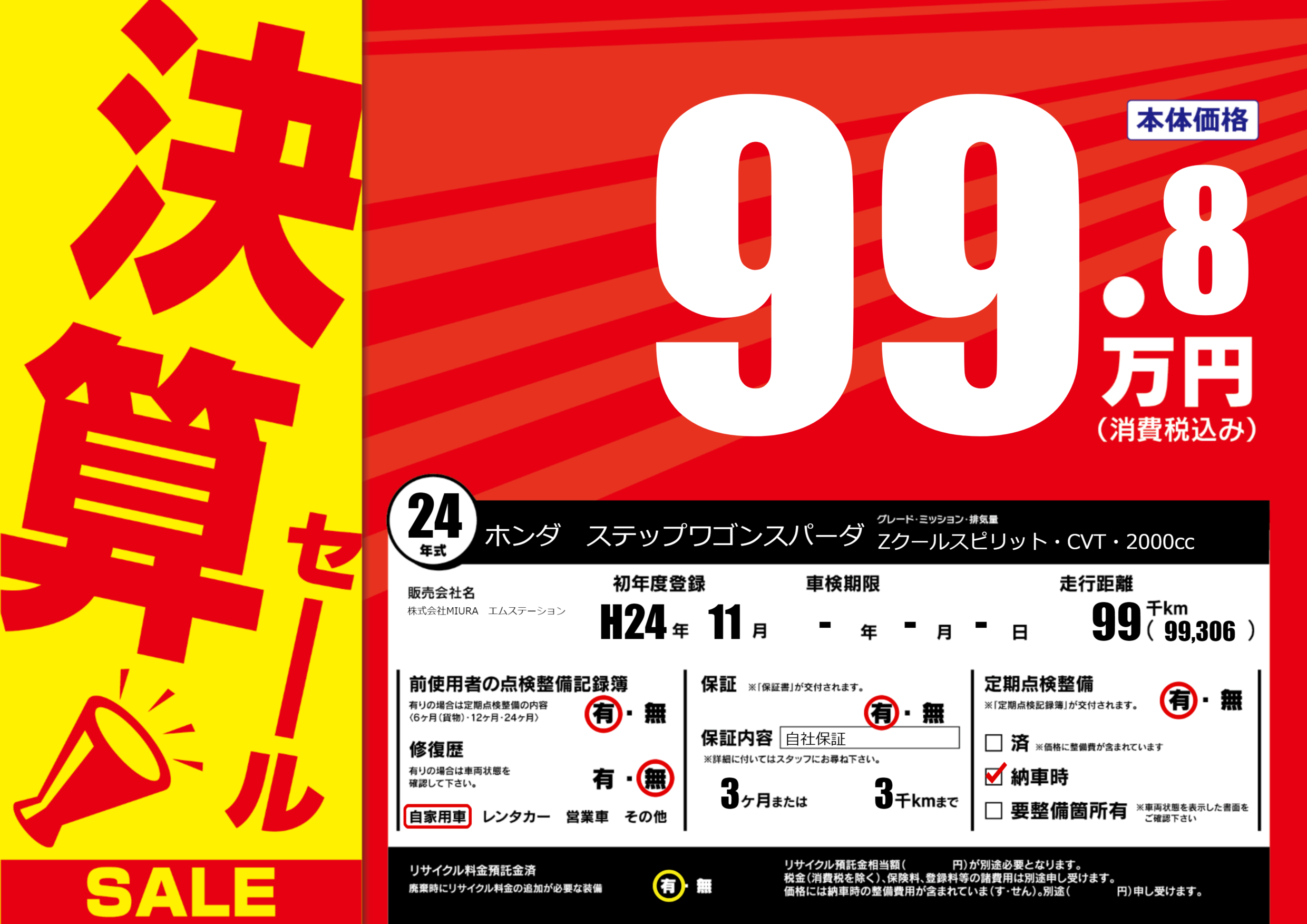保証付き 保証内容(自社保証) 3ヶ月または3千km |