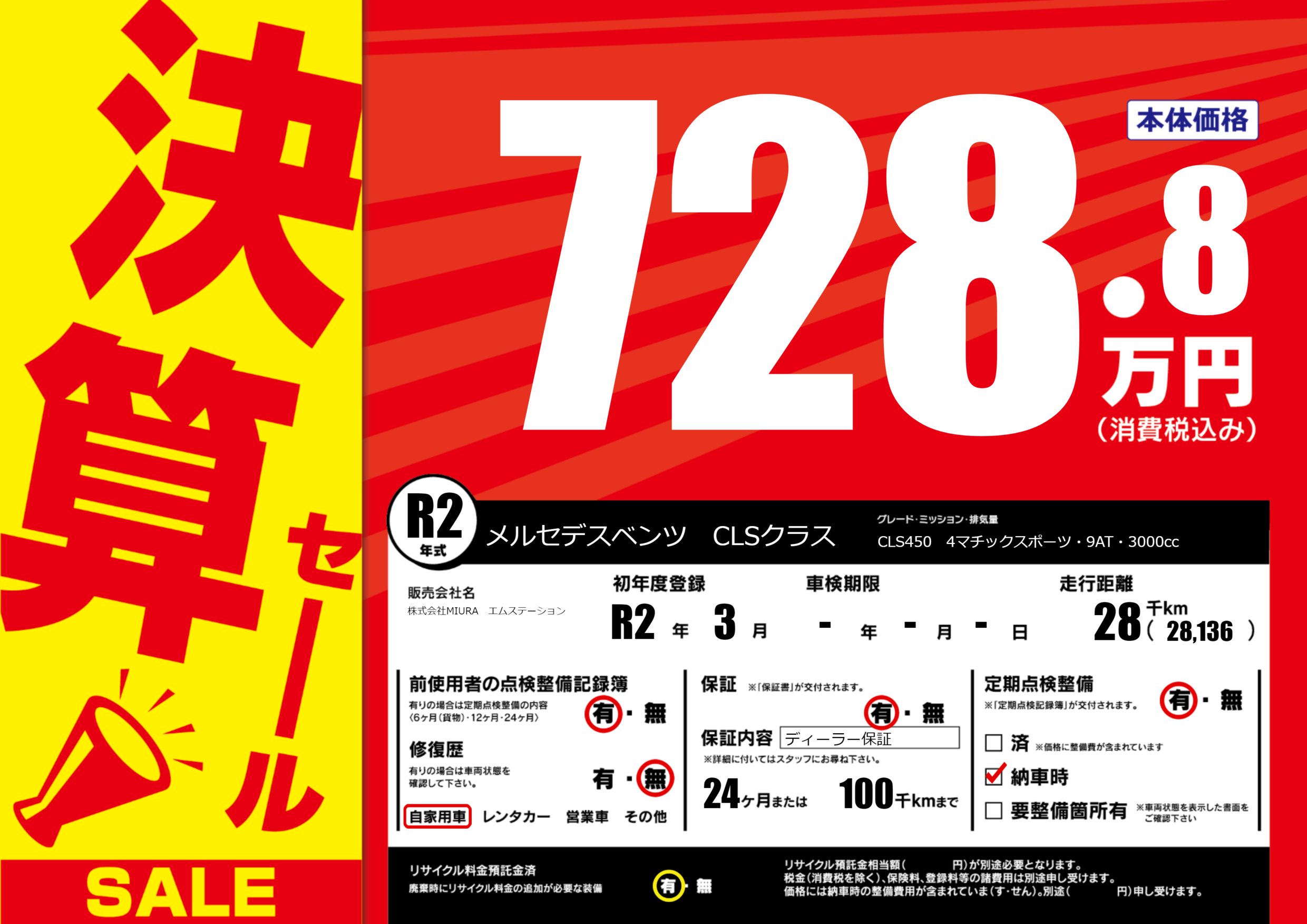 CLS450 4マチックスポーツ・9AT・3000cc |
