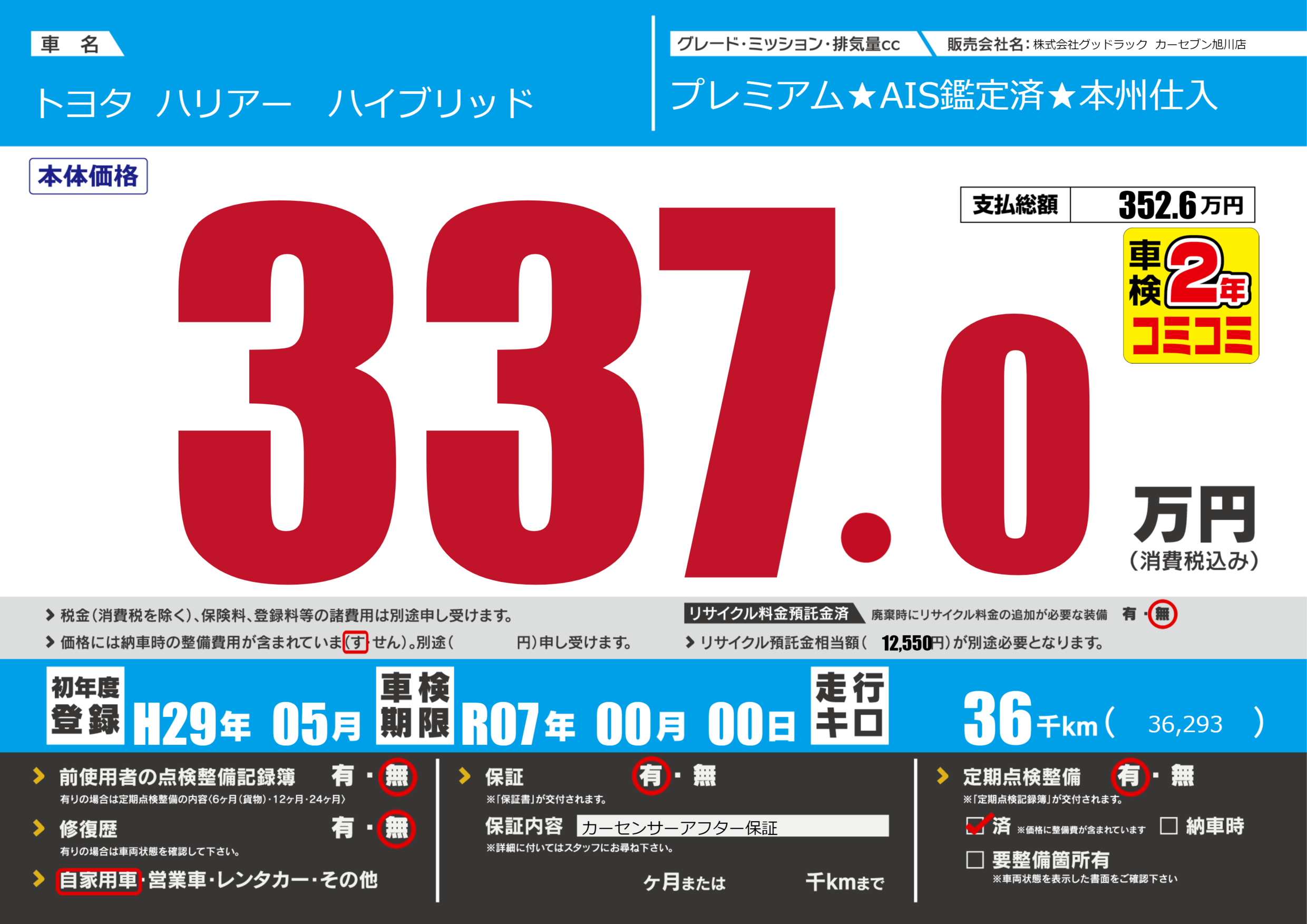 | 定期点検整備 | 定期点検整備あり 定期点検整備済み | ||