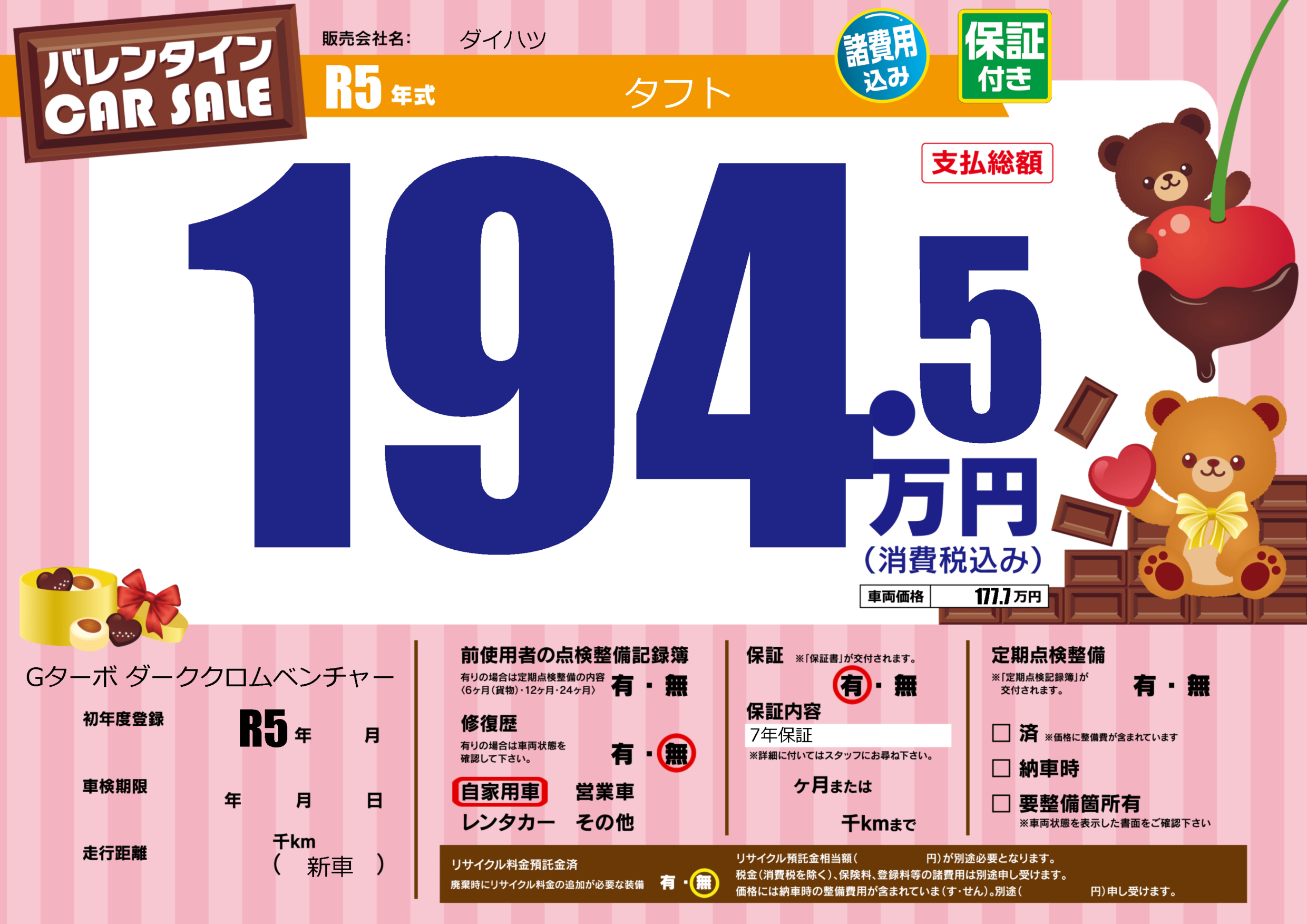 保証付き 保証内容(7年保証) ---ヶ月または()千kmまで |