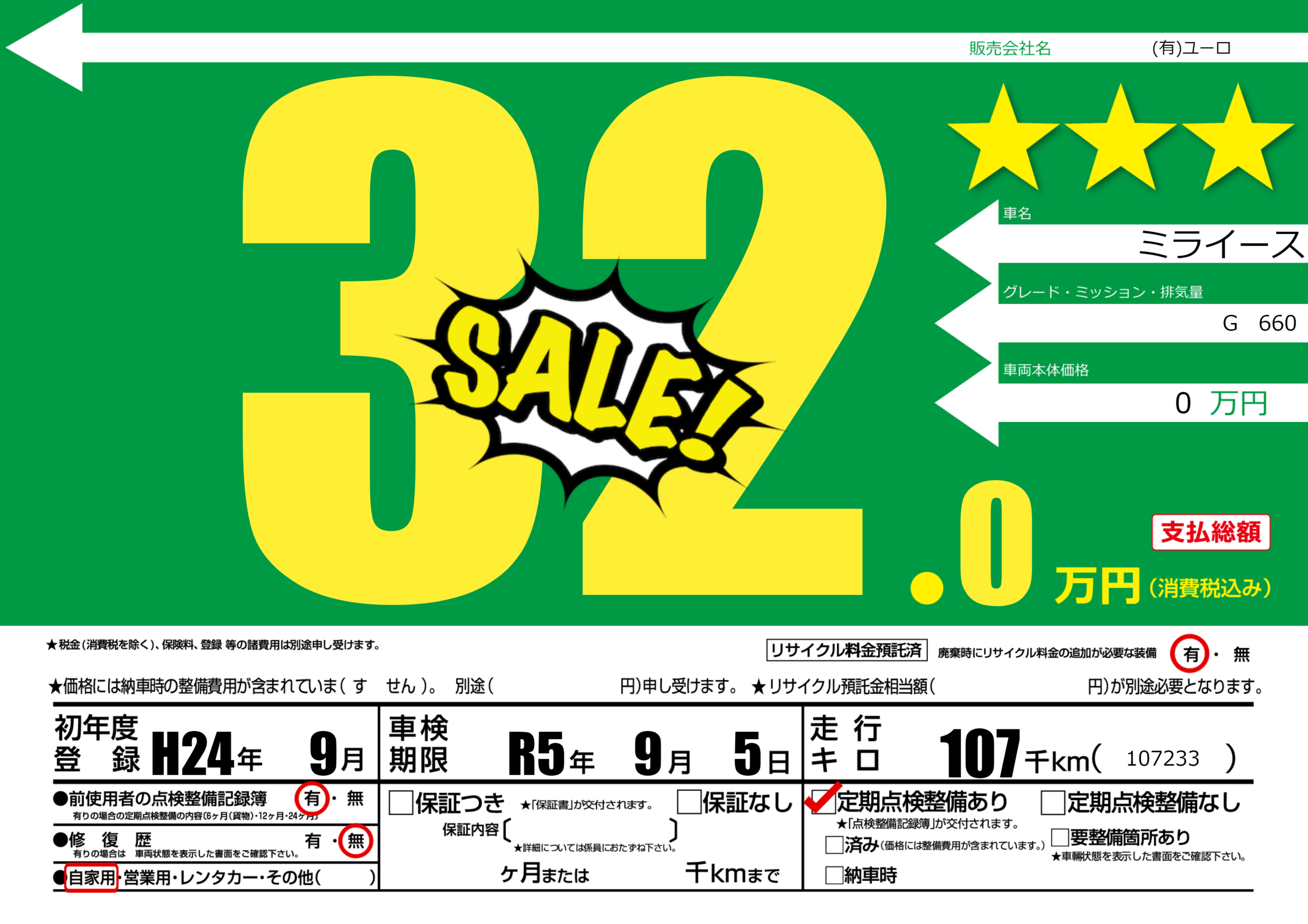 | 定期点検整備 | 定期点検整備あり | ||