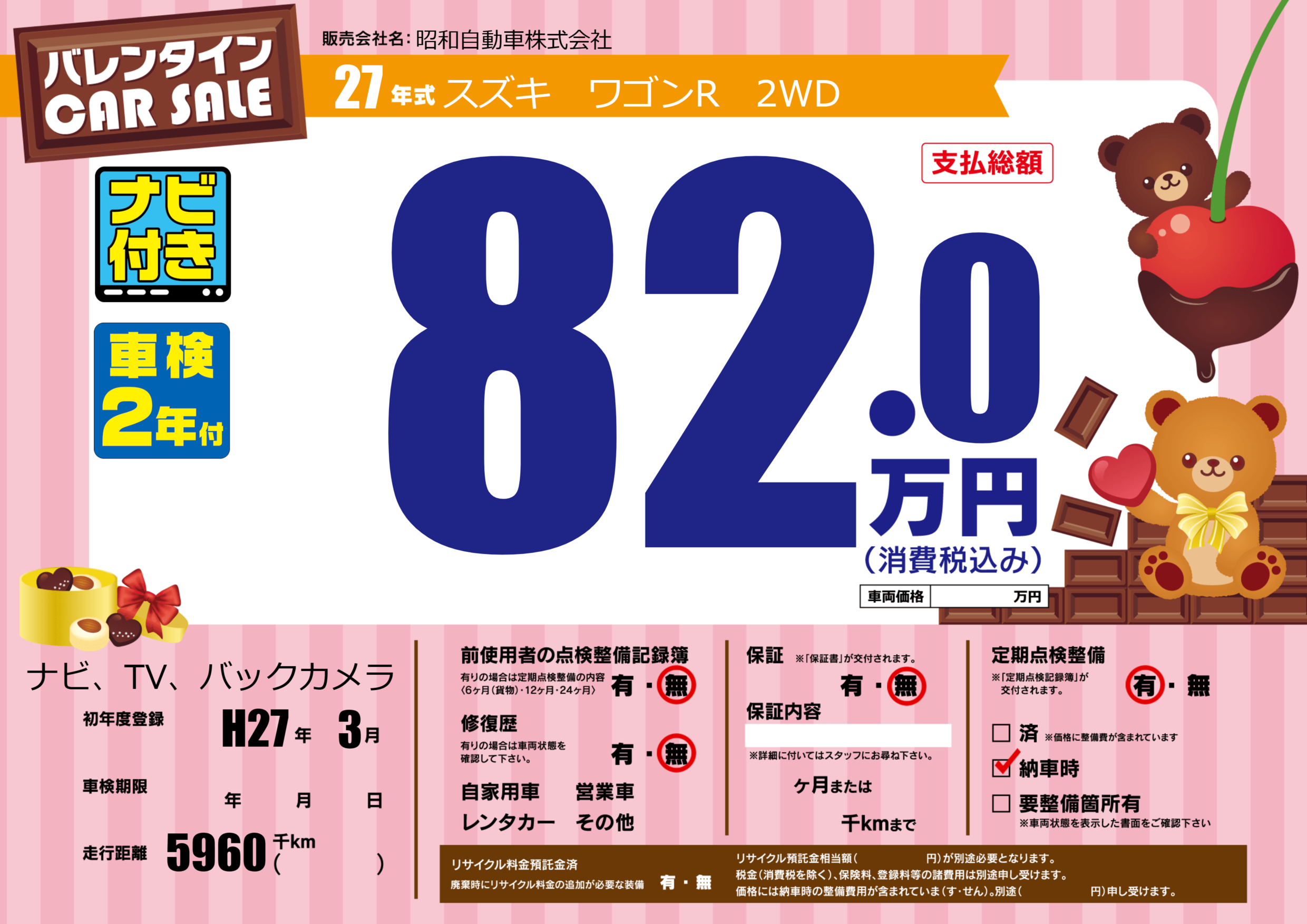 | 定期点検整備 | 定期点検整備あり 納車時あり | ||