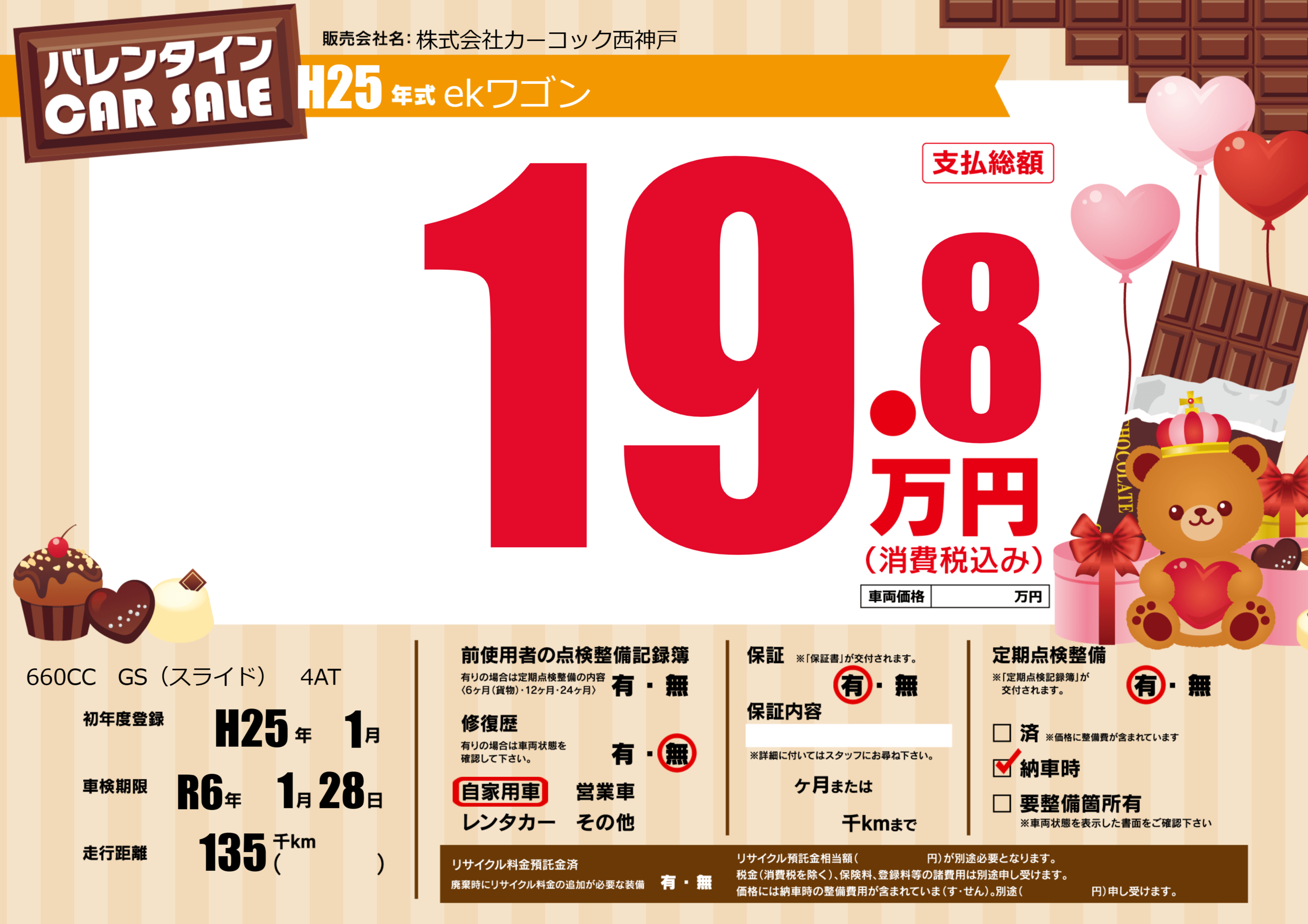 | 定期点検整備 | 定期点検整備あり 納車時あり | ||