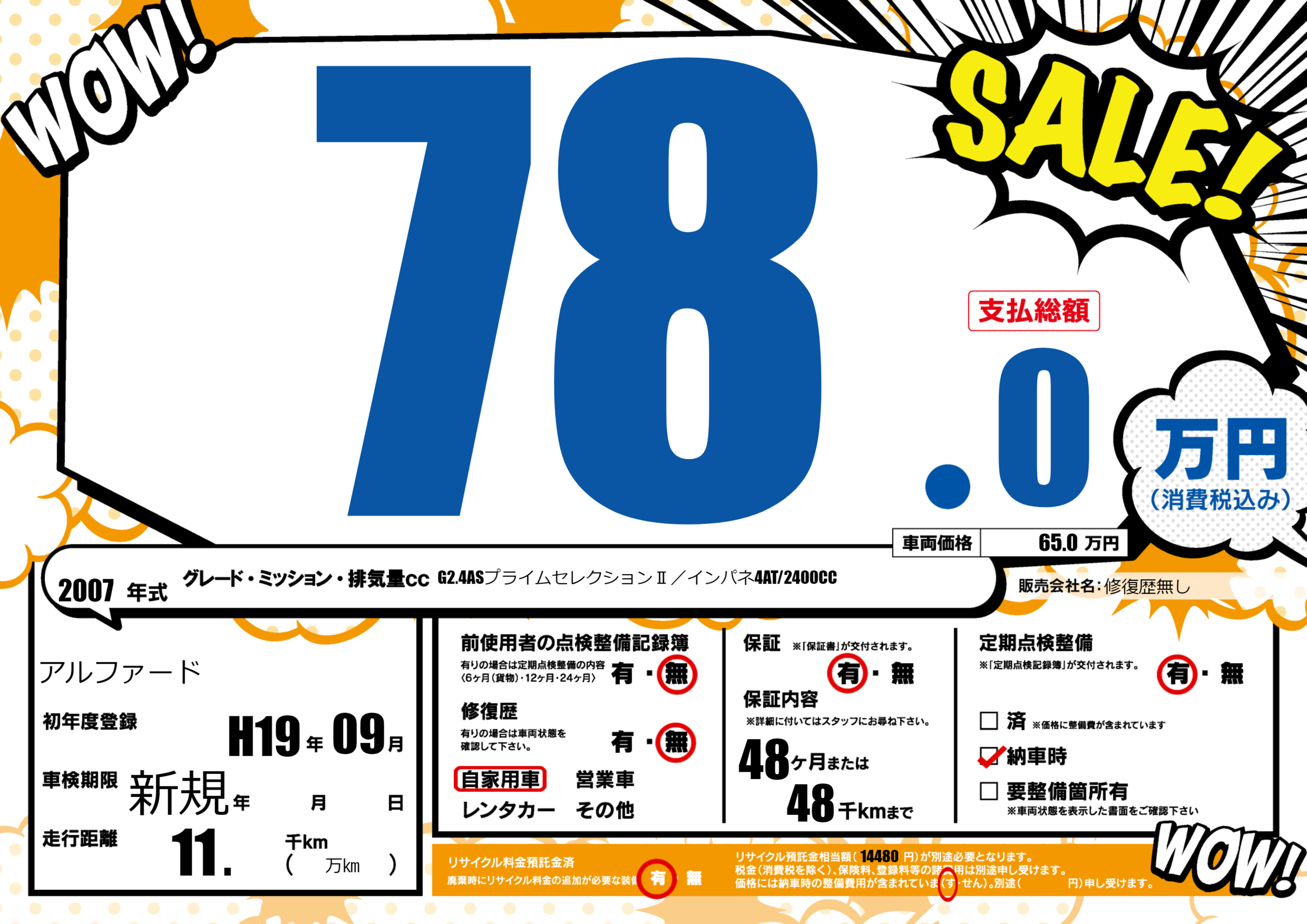 保証付き 保証内容(---) 48ヶ月または(48)千kmまで |