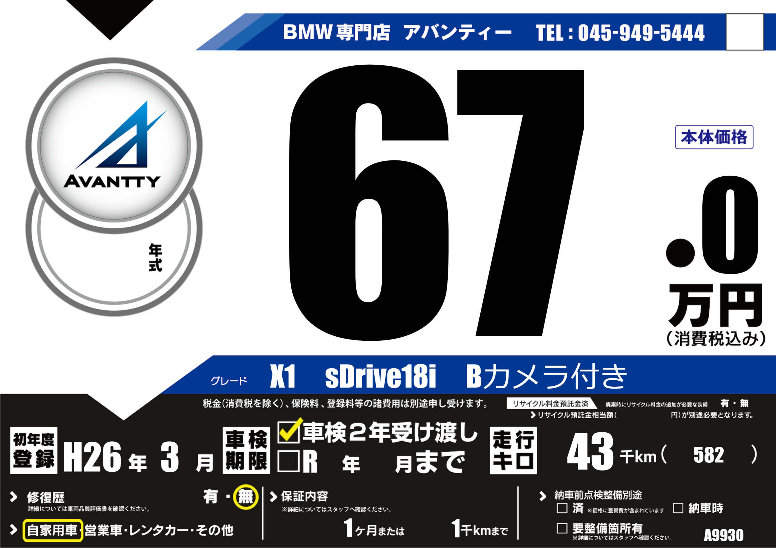 | 走行キロ | 4.3万km | 初年度登録 | H26年3月 |