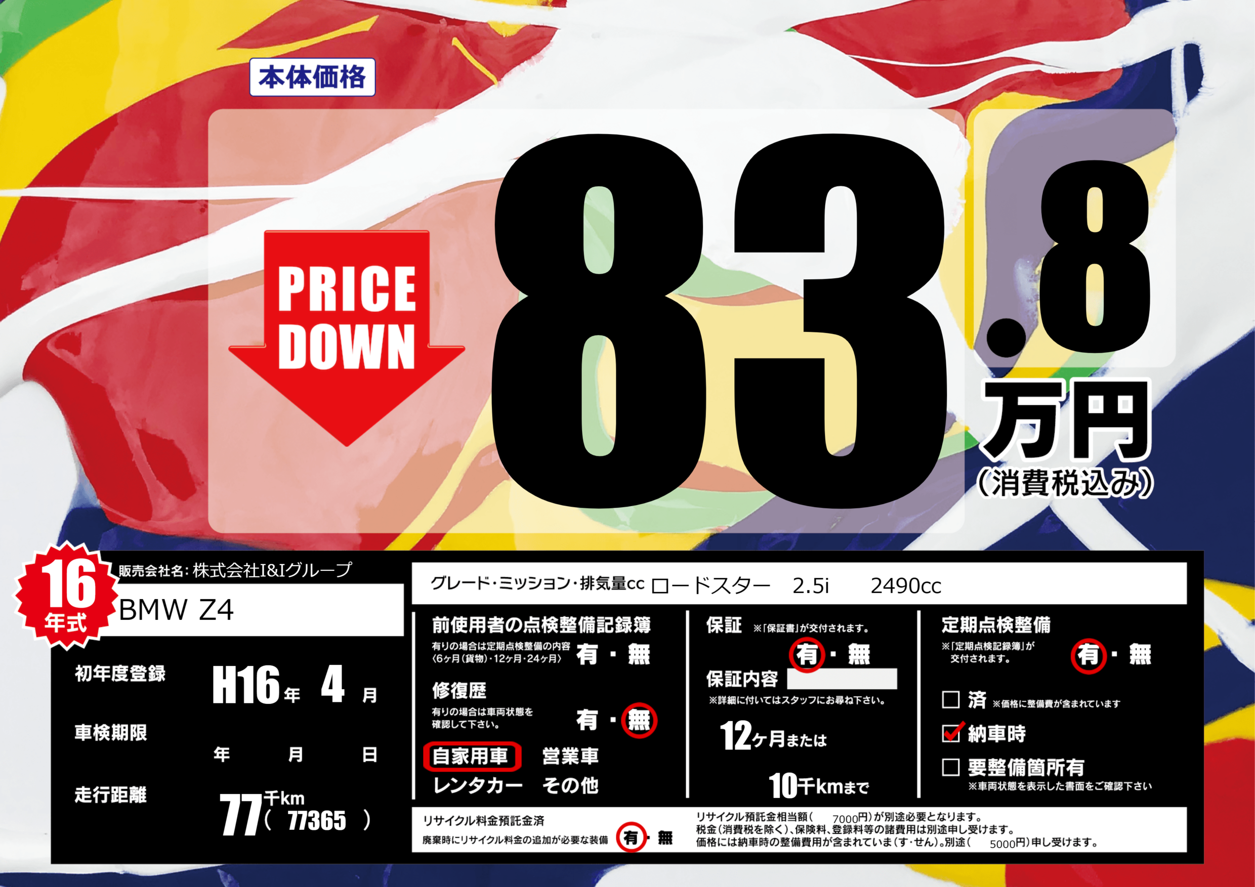 | 車名 | BMW Z4 | グレード ミッション 排気量 |