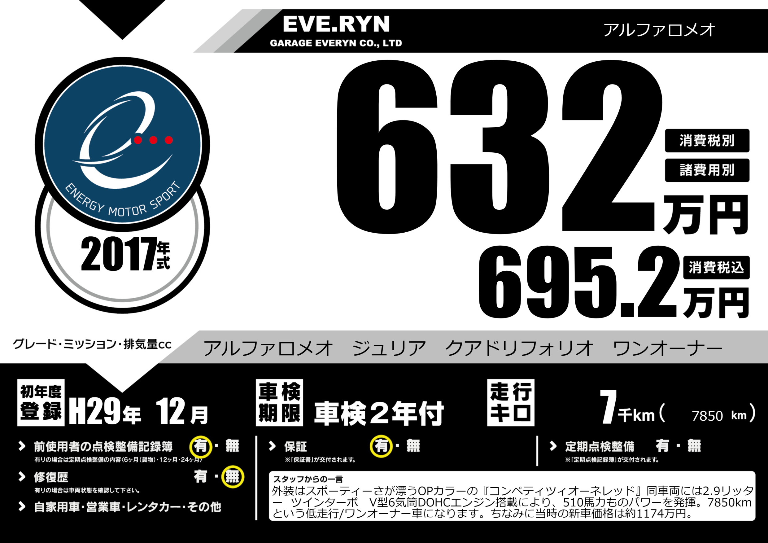 アルファロメオ ジュリア クアドリフォリオ ワンオーナー |