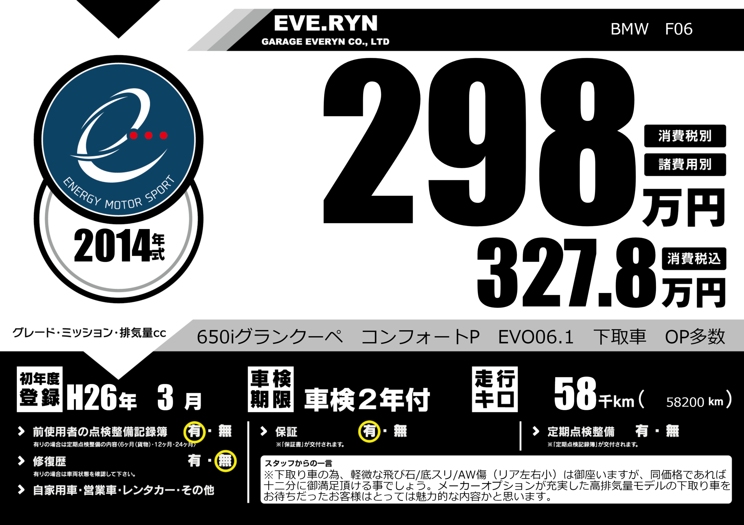 650iグランクーペ コンフォートP EVO06.1 下取車 OP多数 |
