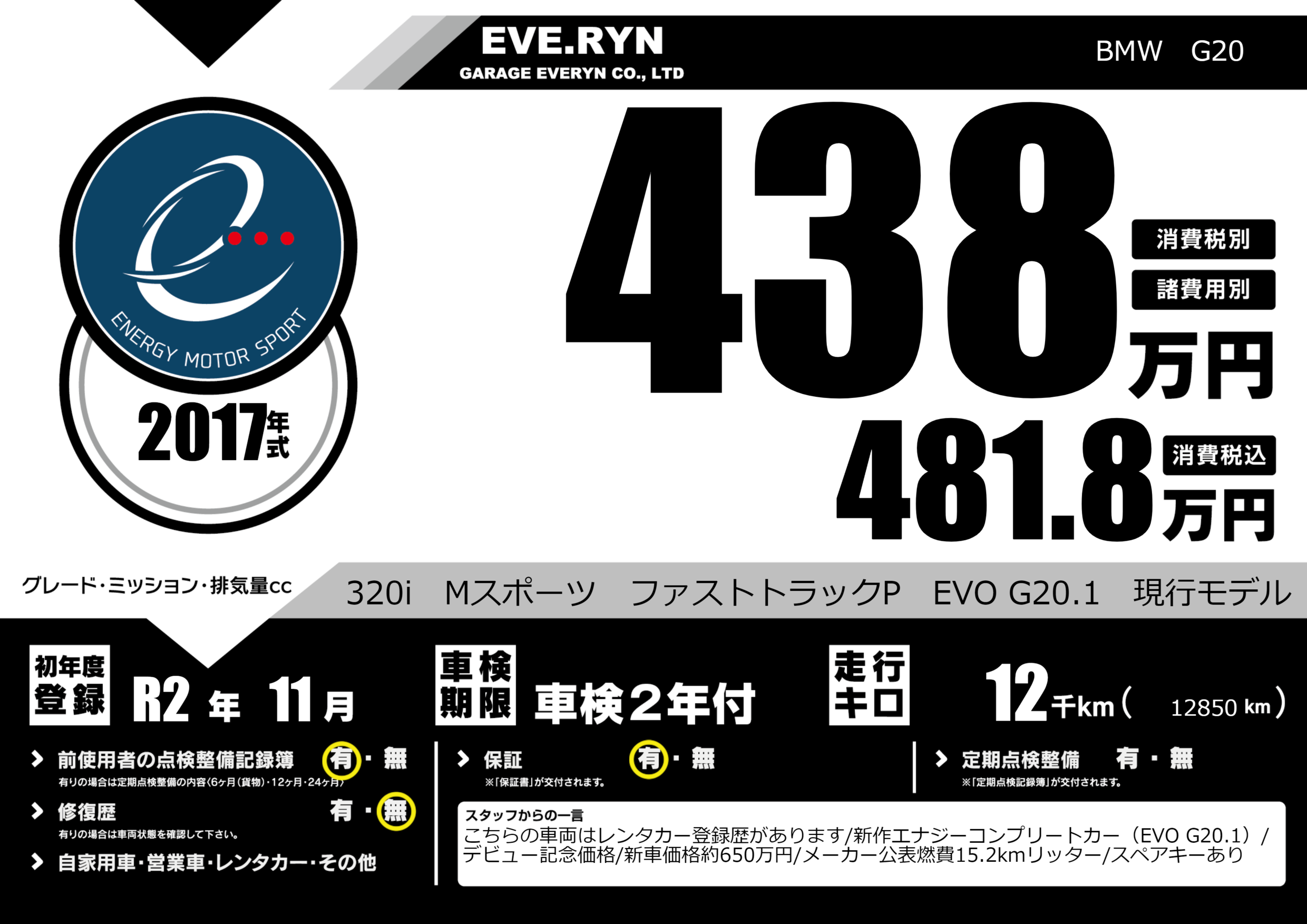 320i Mスポーツ ファストトラックP EVO G20.1 現行モデル |