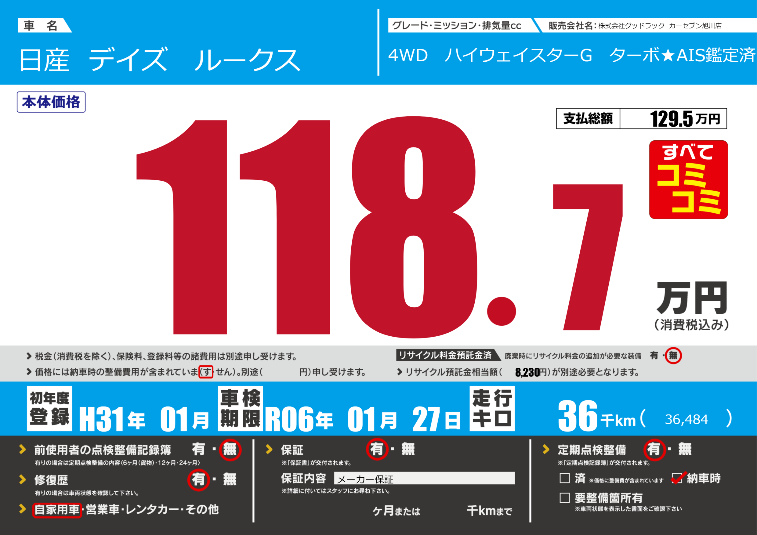 あり | 車検制限 | R06年01月27月 |
