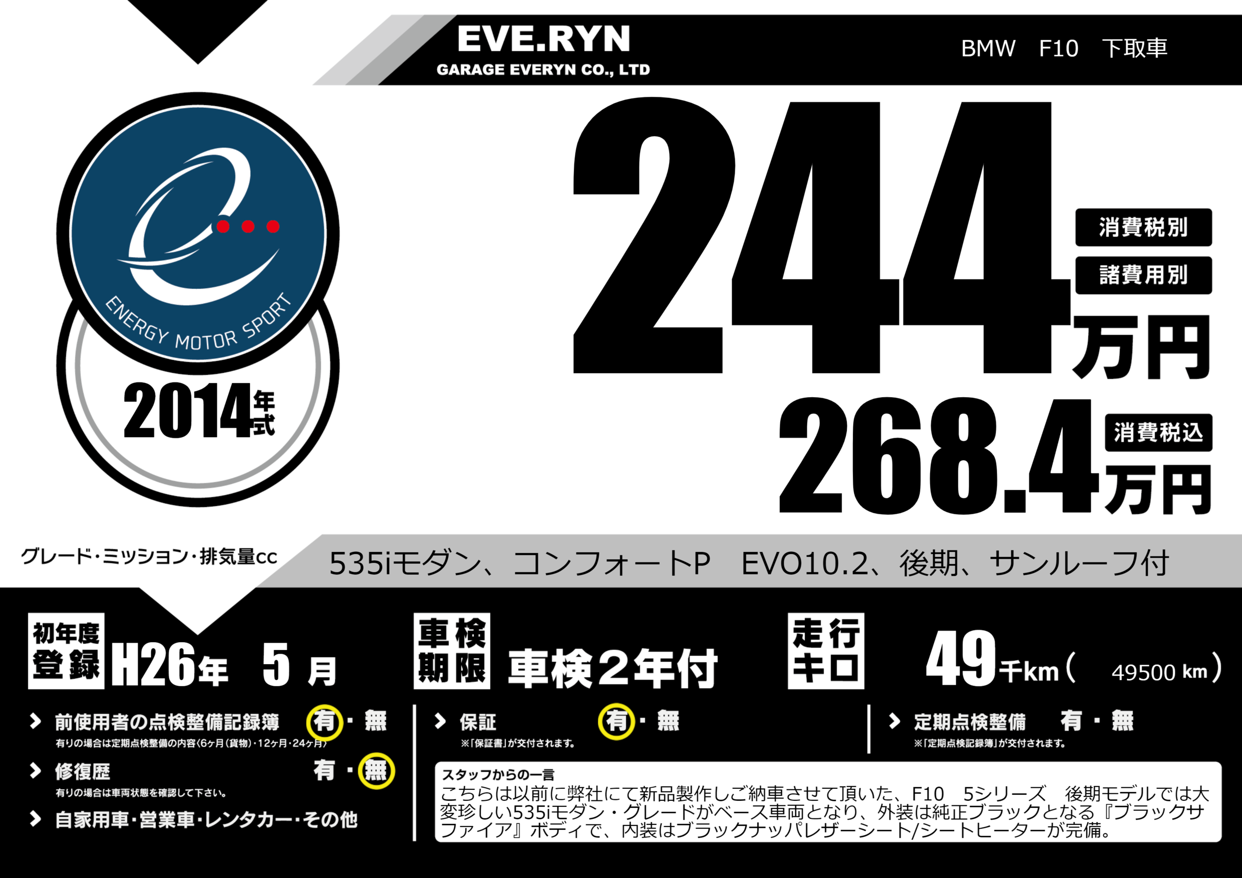 | 車名 | BMW F10 下取車 | グレード ミッション 排気量 |