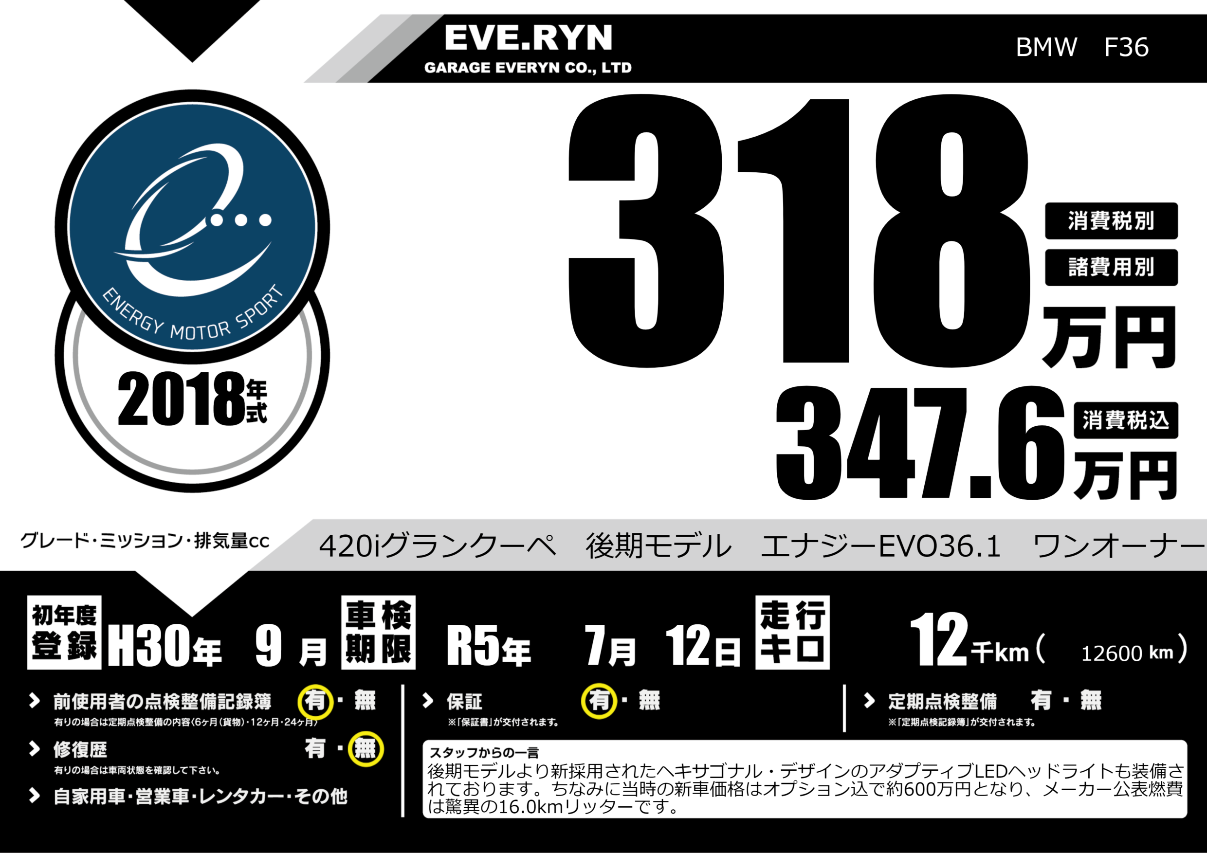 420iグランクーペ 後期モデル エナジーEVO36.1 ワンオーナー |